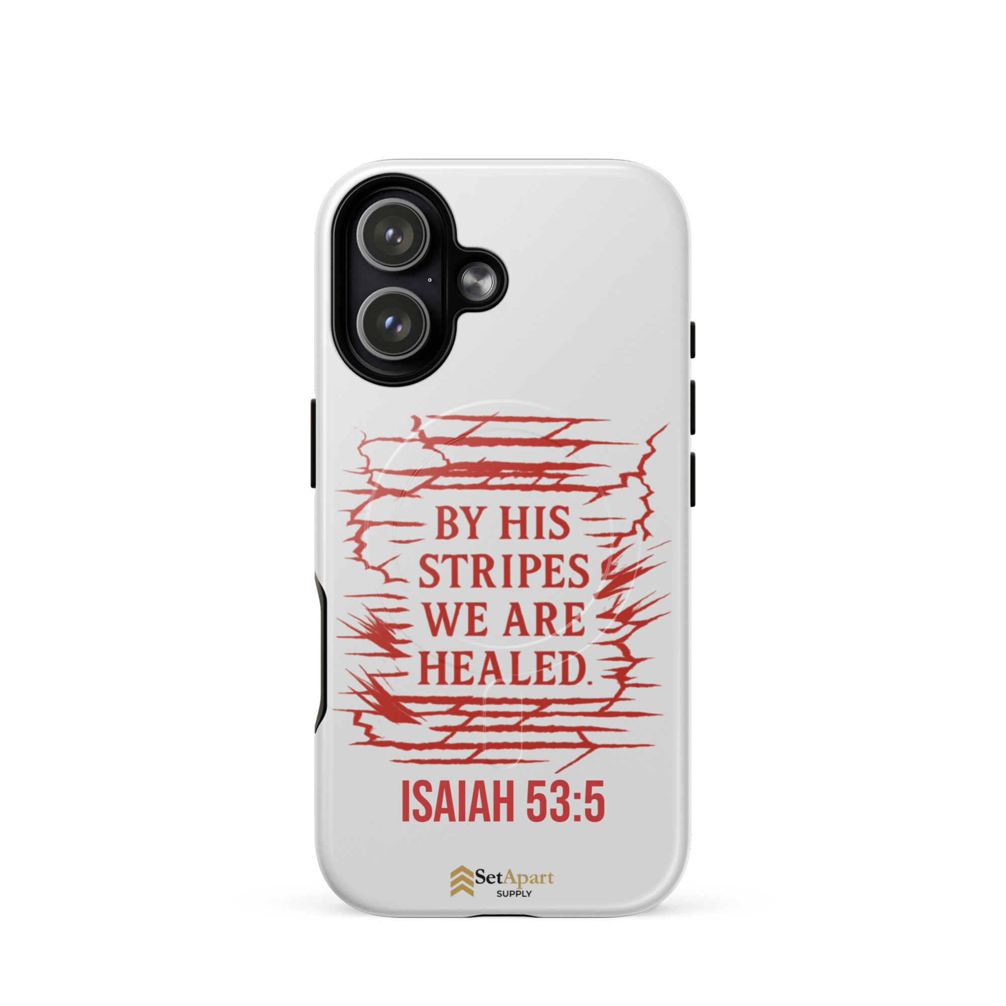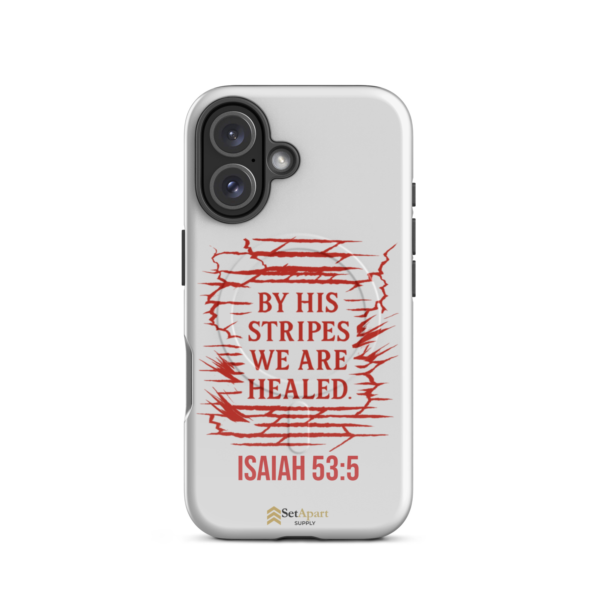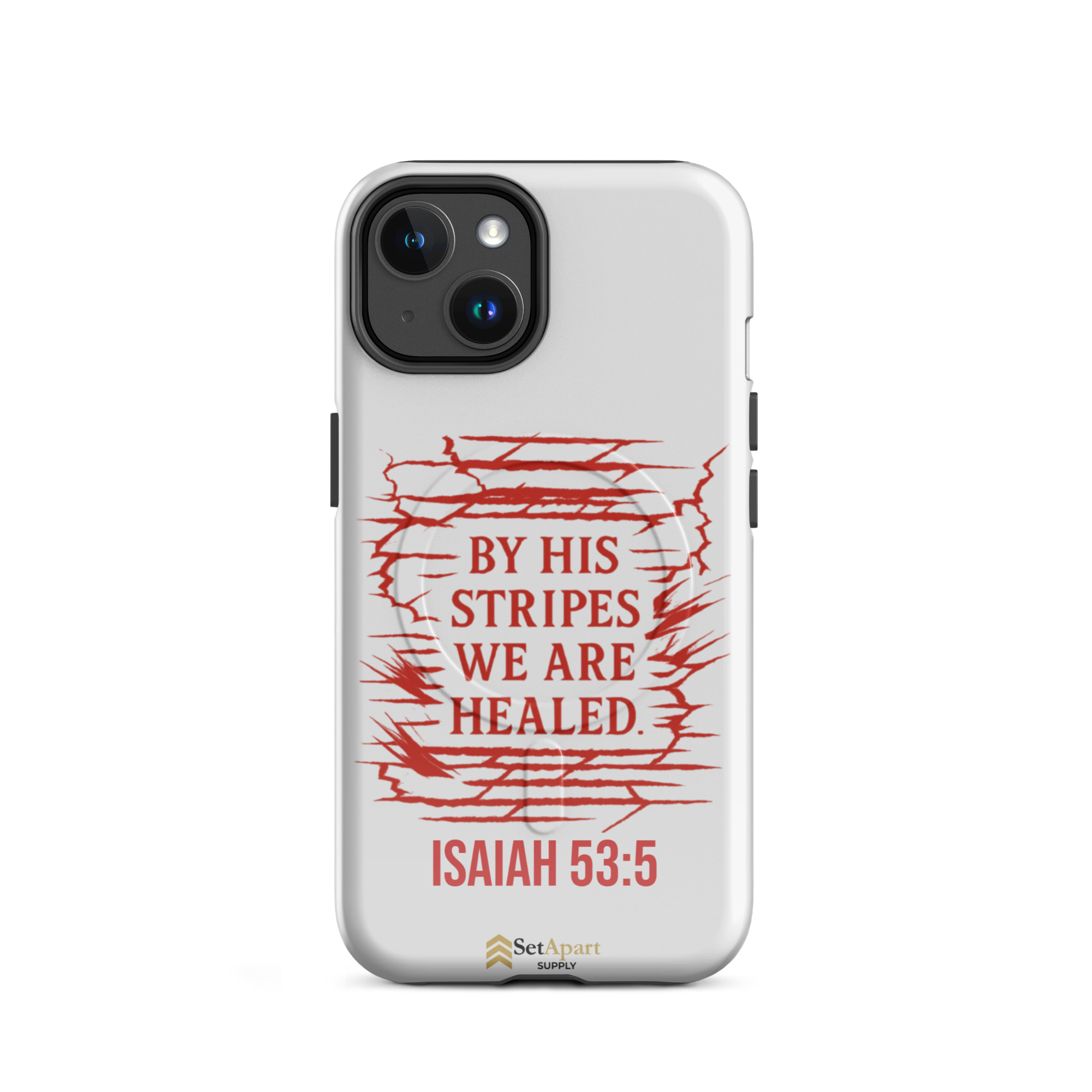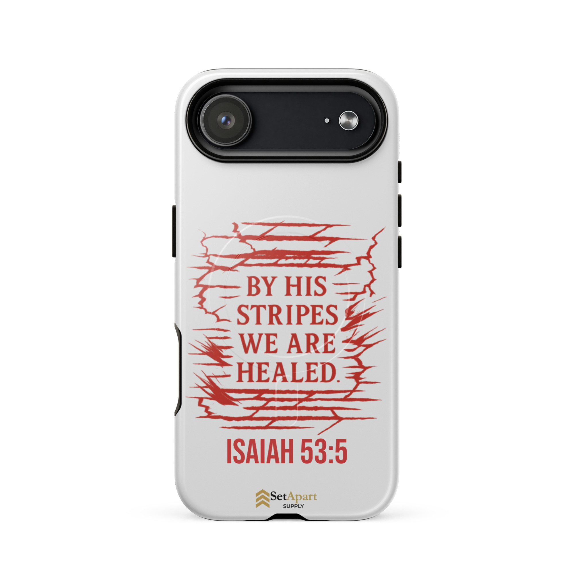 The By His Stripes We Are Healed MagSafe iPhone Tough Case by Marked & Chosen is built to carry scripture through impact, pressure, and daily wear.