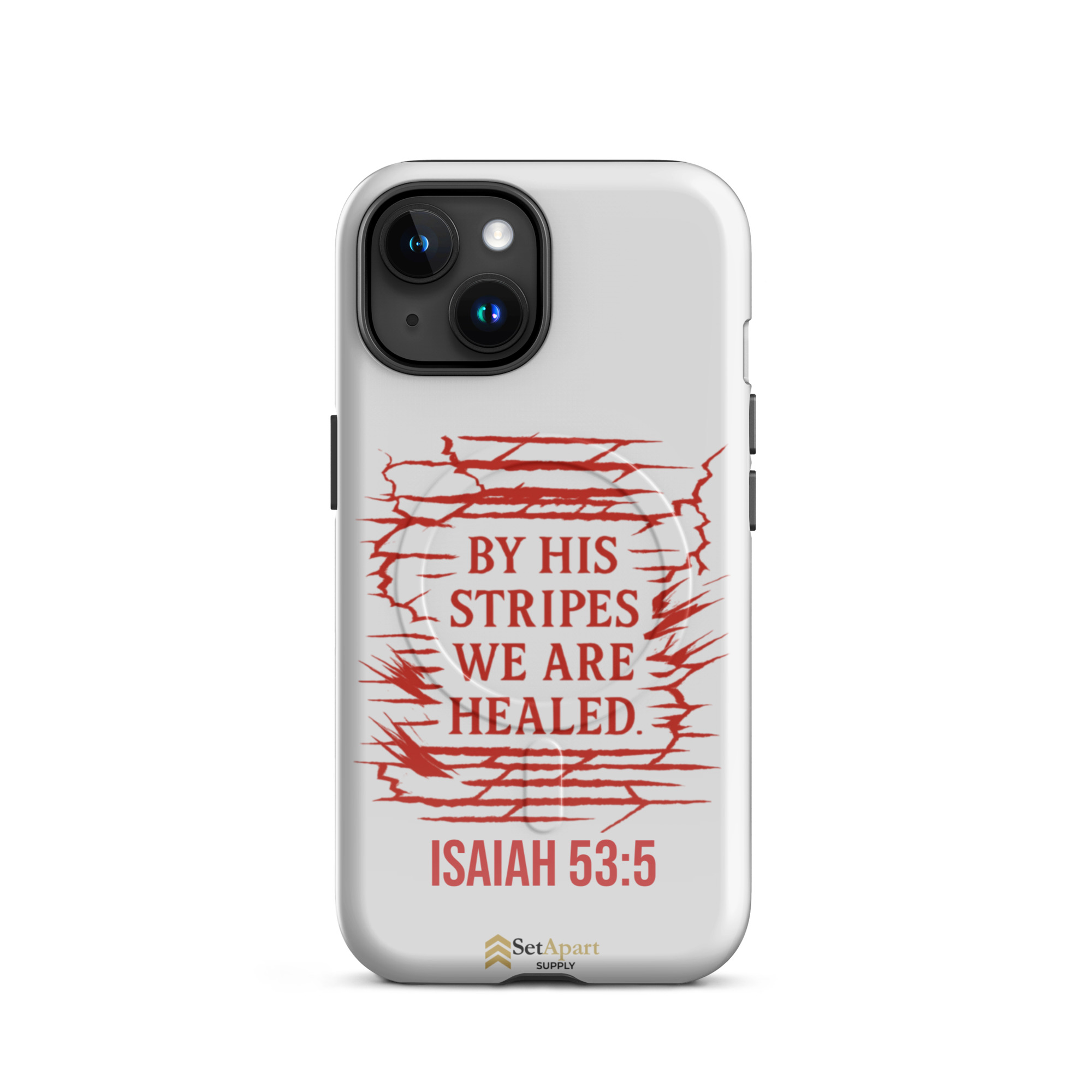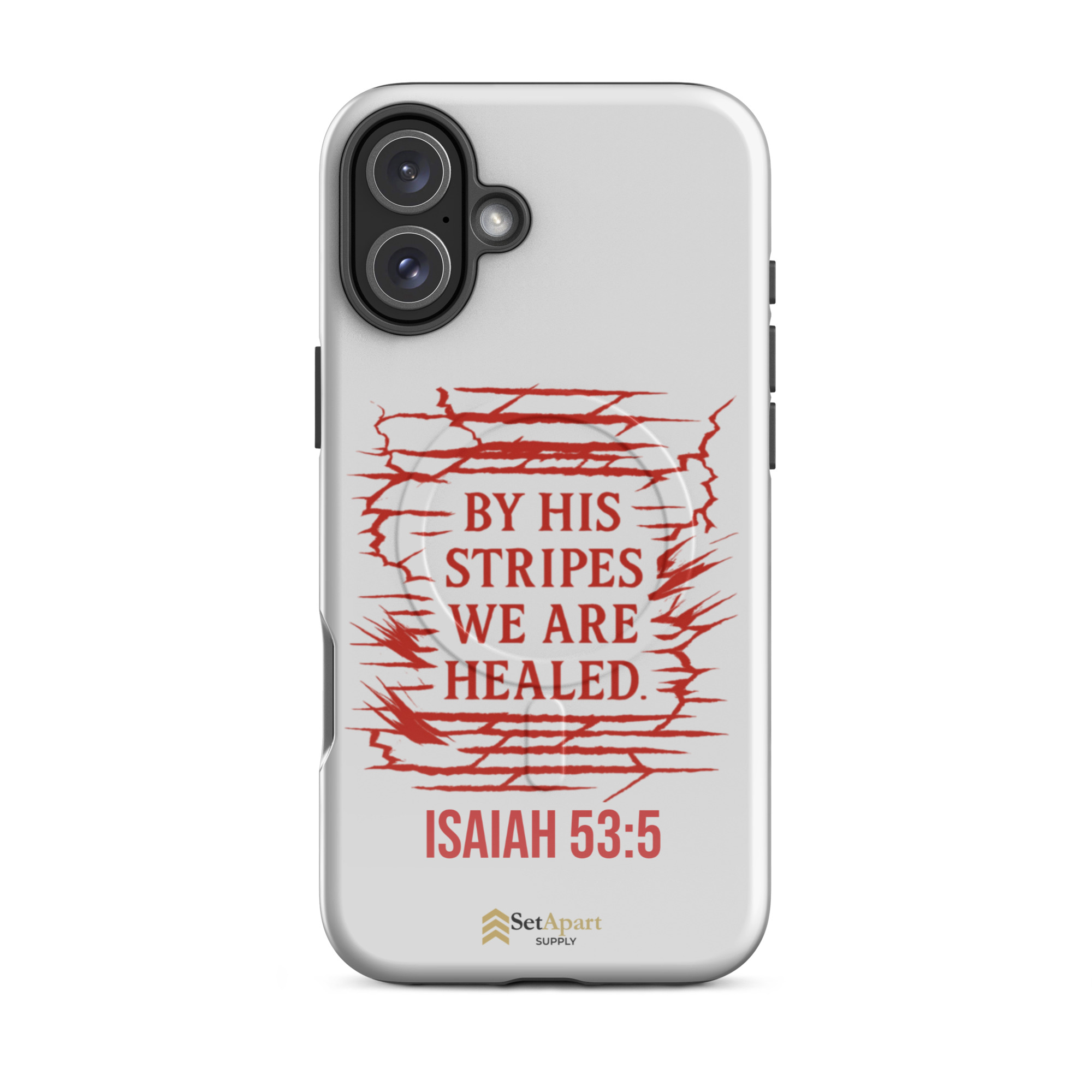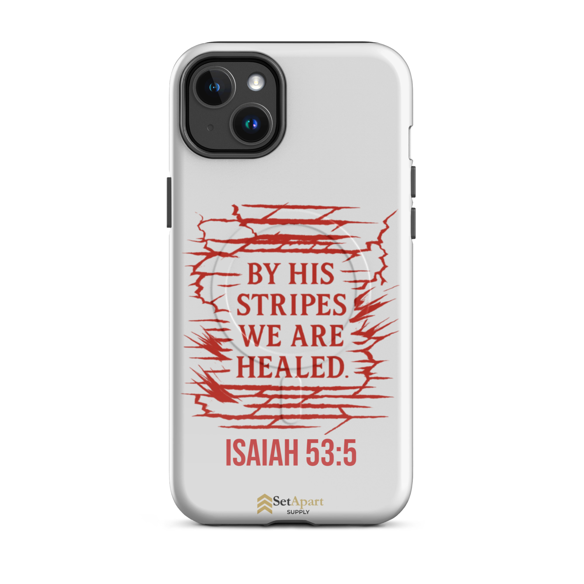 The By His Stripes We Are Healed MagSafe iPhone Tough Case by Marked & Chosen is built to carry scripture through impact, pressure, and daily wear.