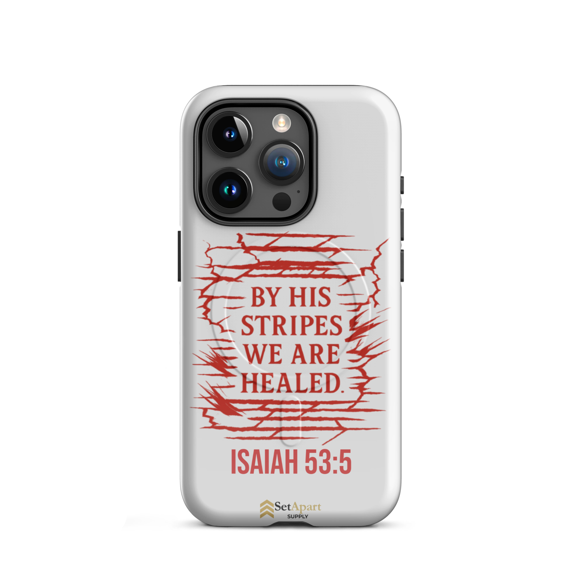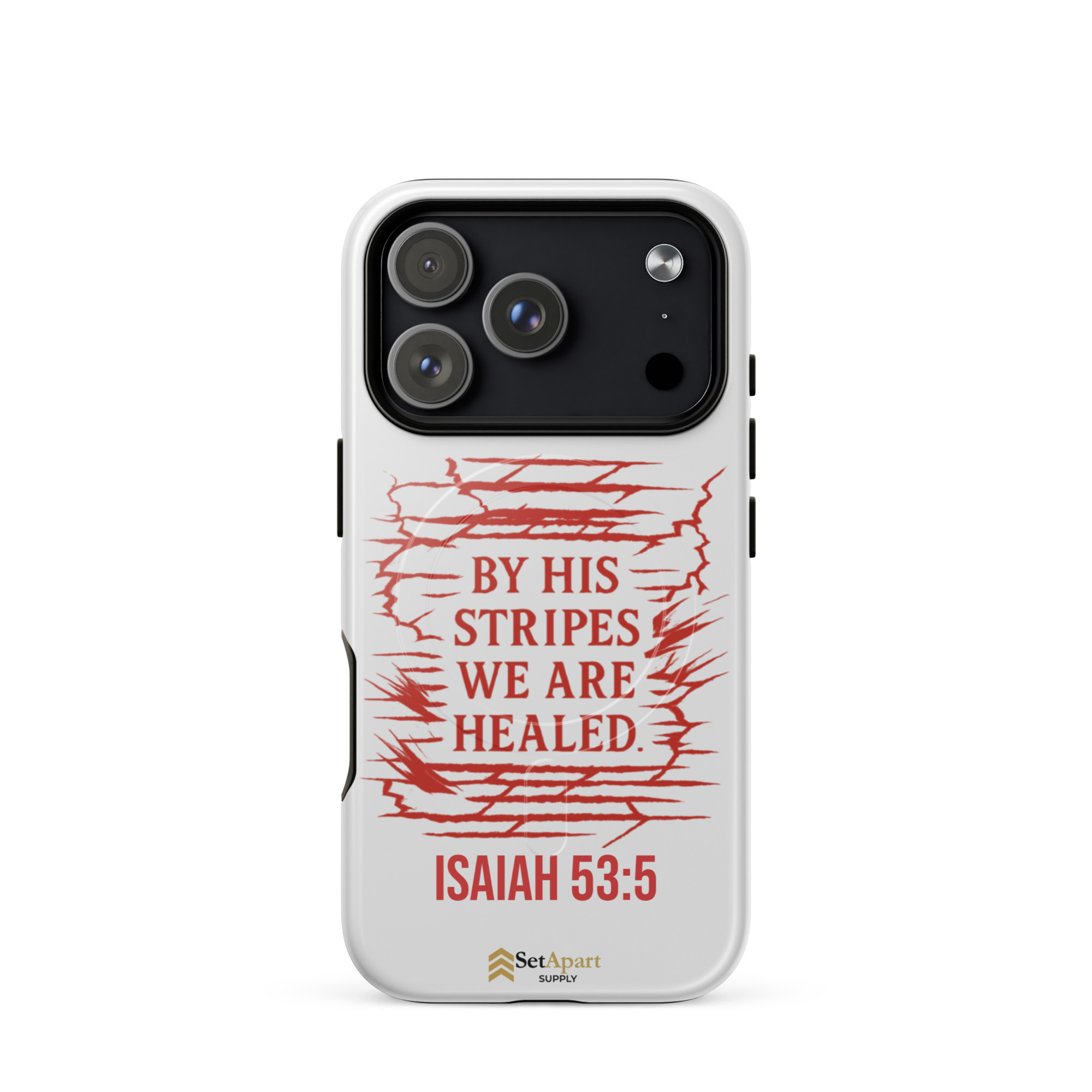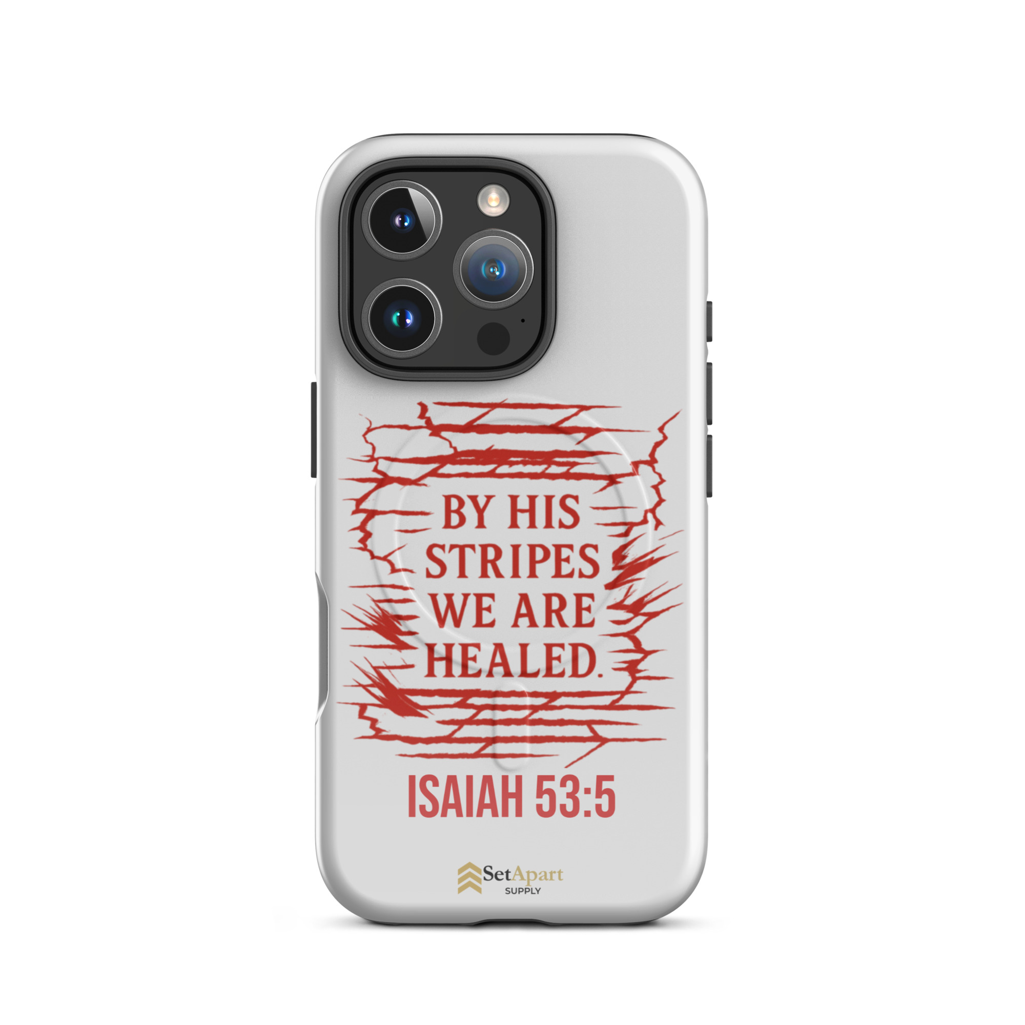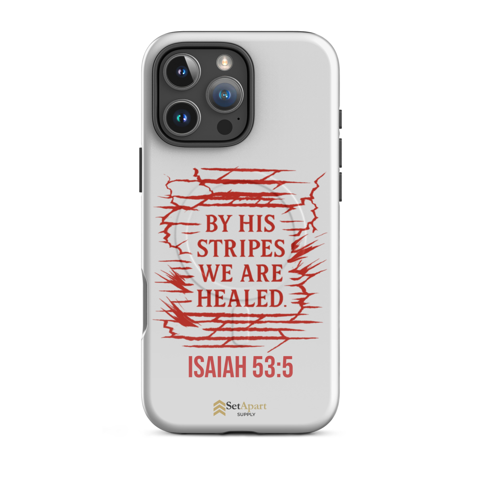 The By His Stripes We Are Healed MagSafe iPhone Tough Case by Marked & Chosen is built to carry scripture through impact, pressure, and daily wear.