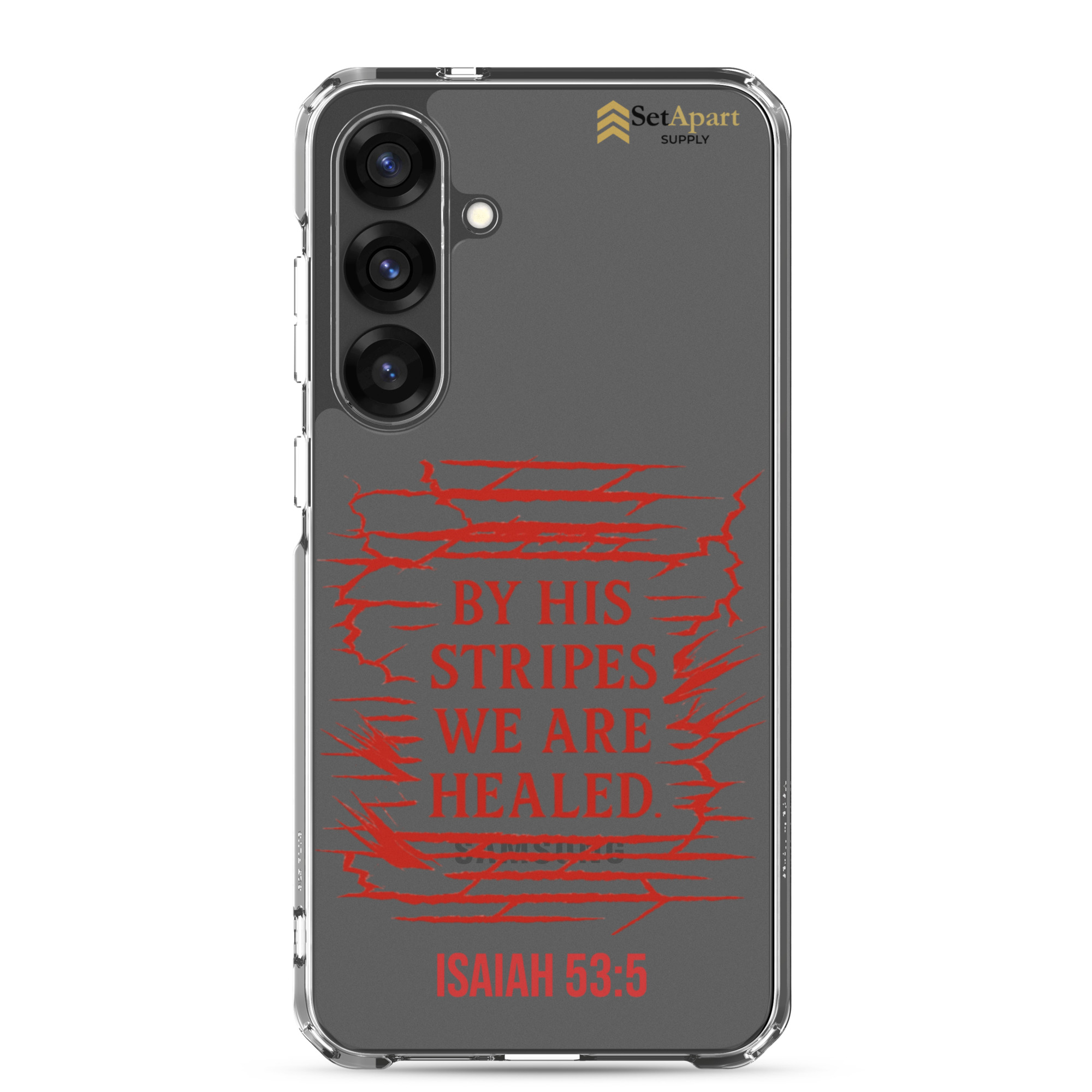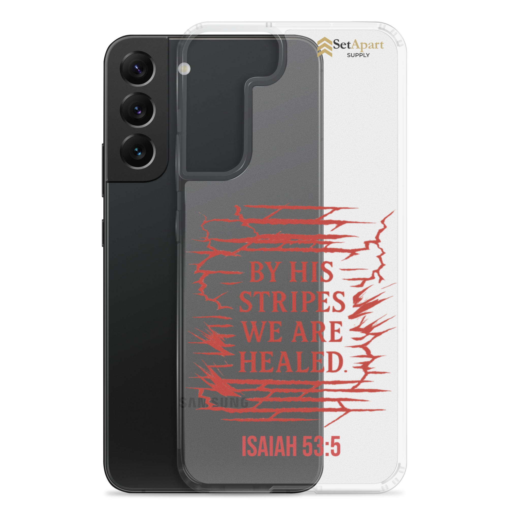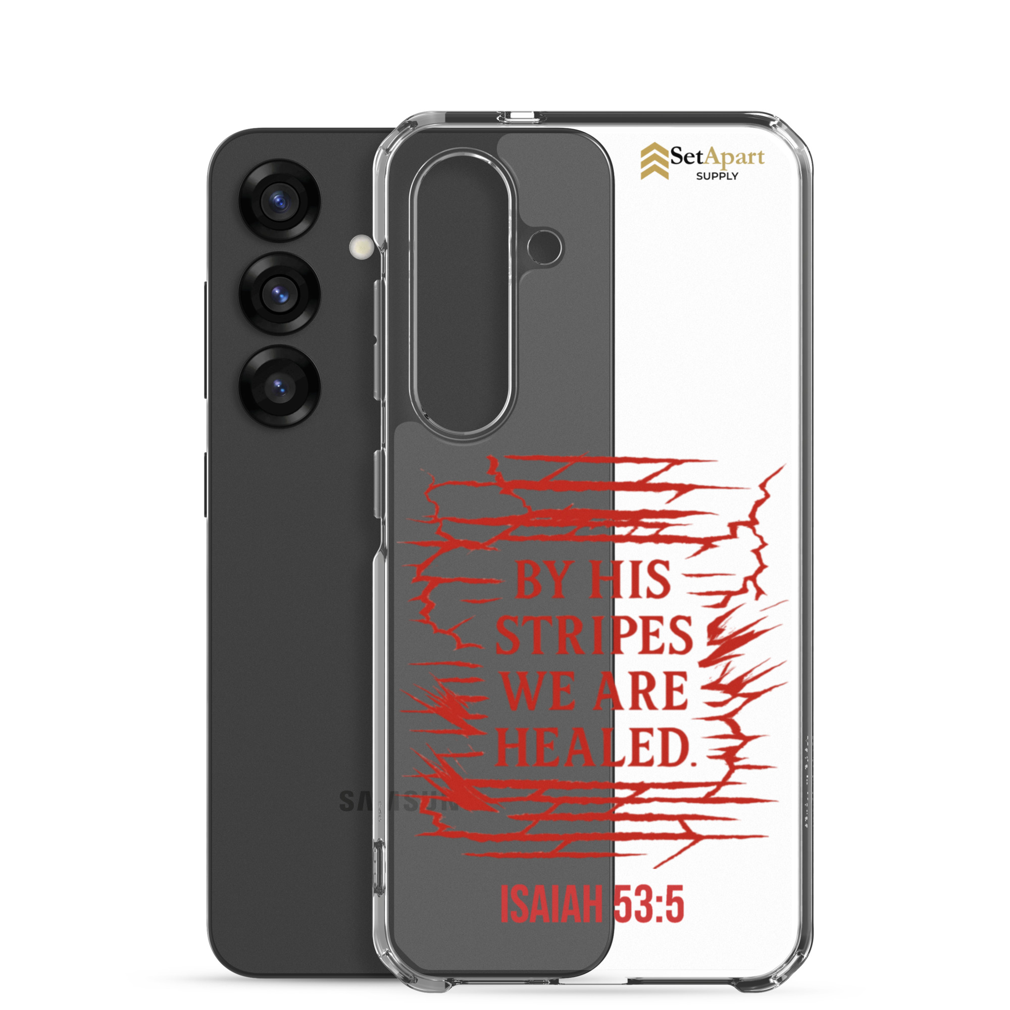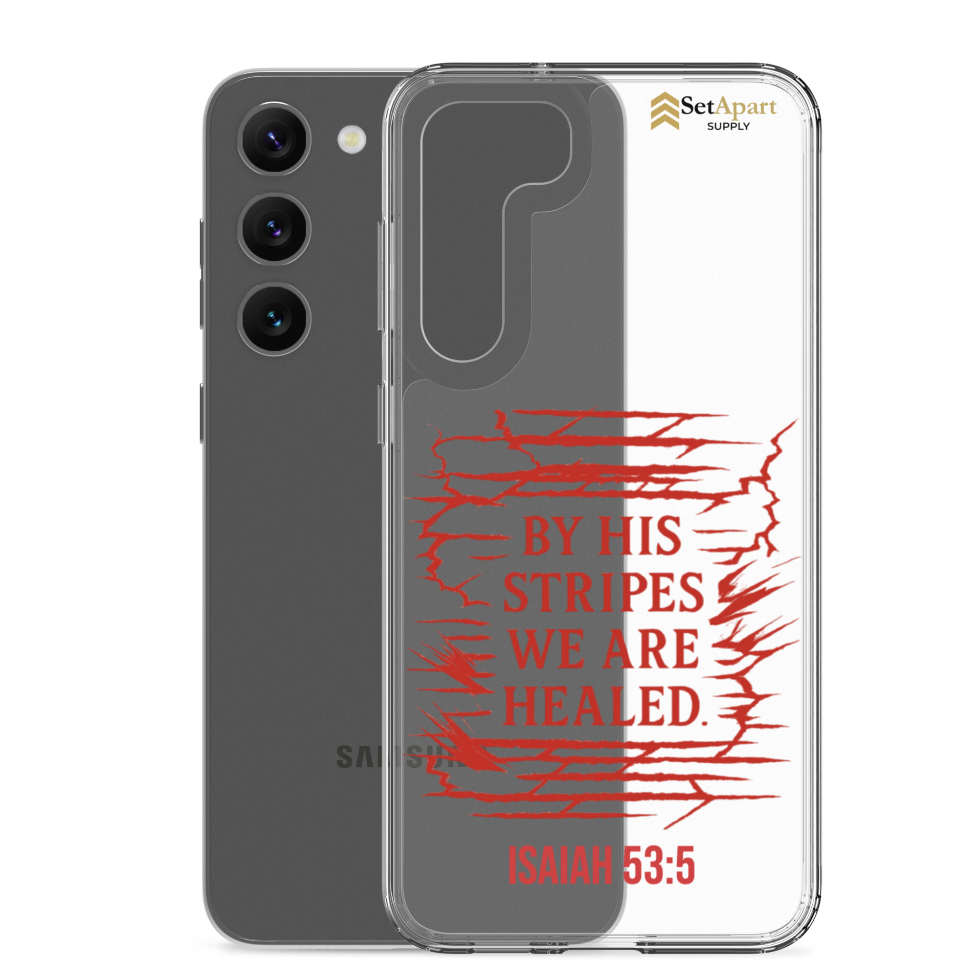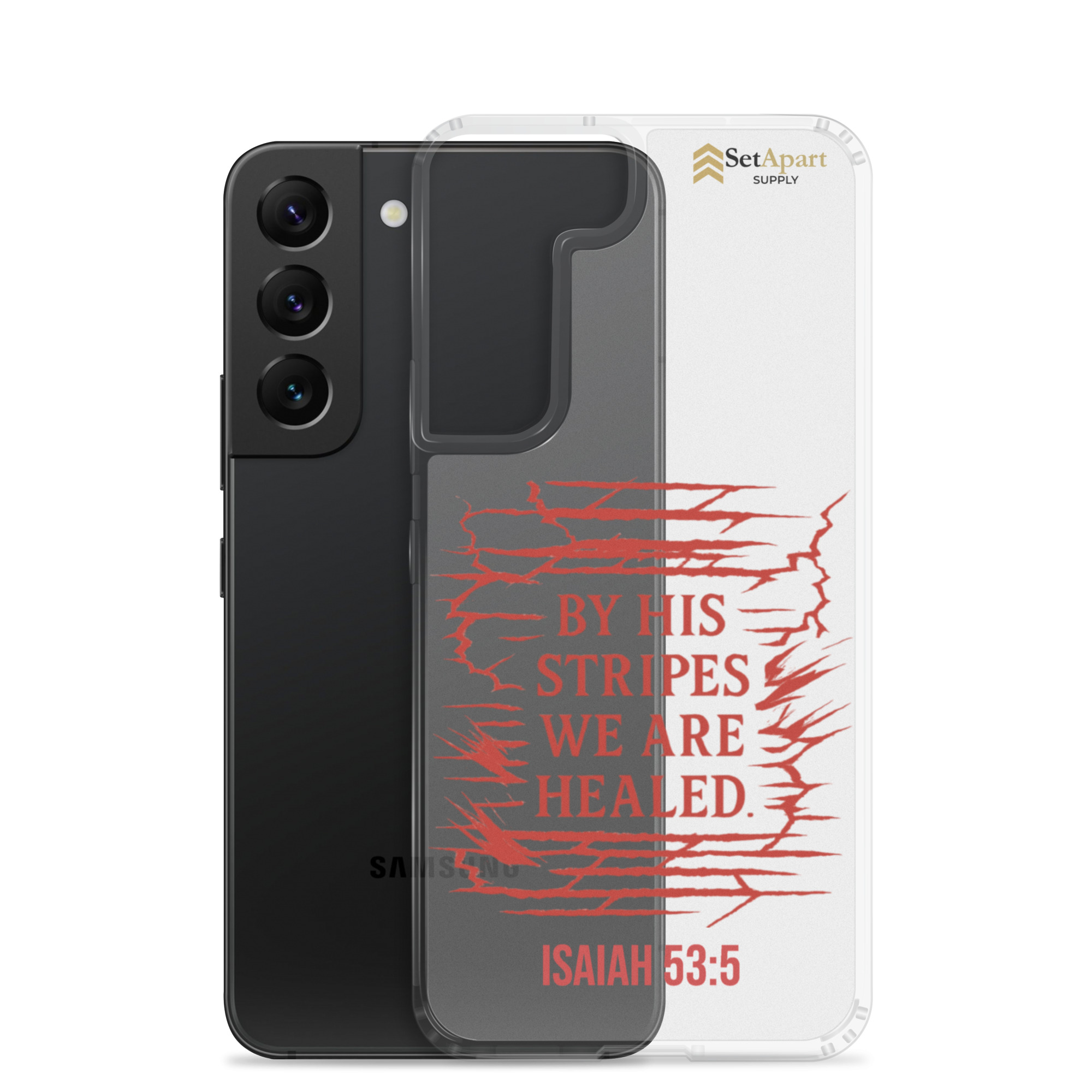The By His Stripes We Are Healed Clear Samsung Case by Marked & Chosen places scripture at the center of everyday life.