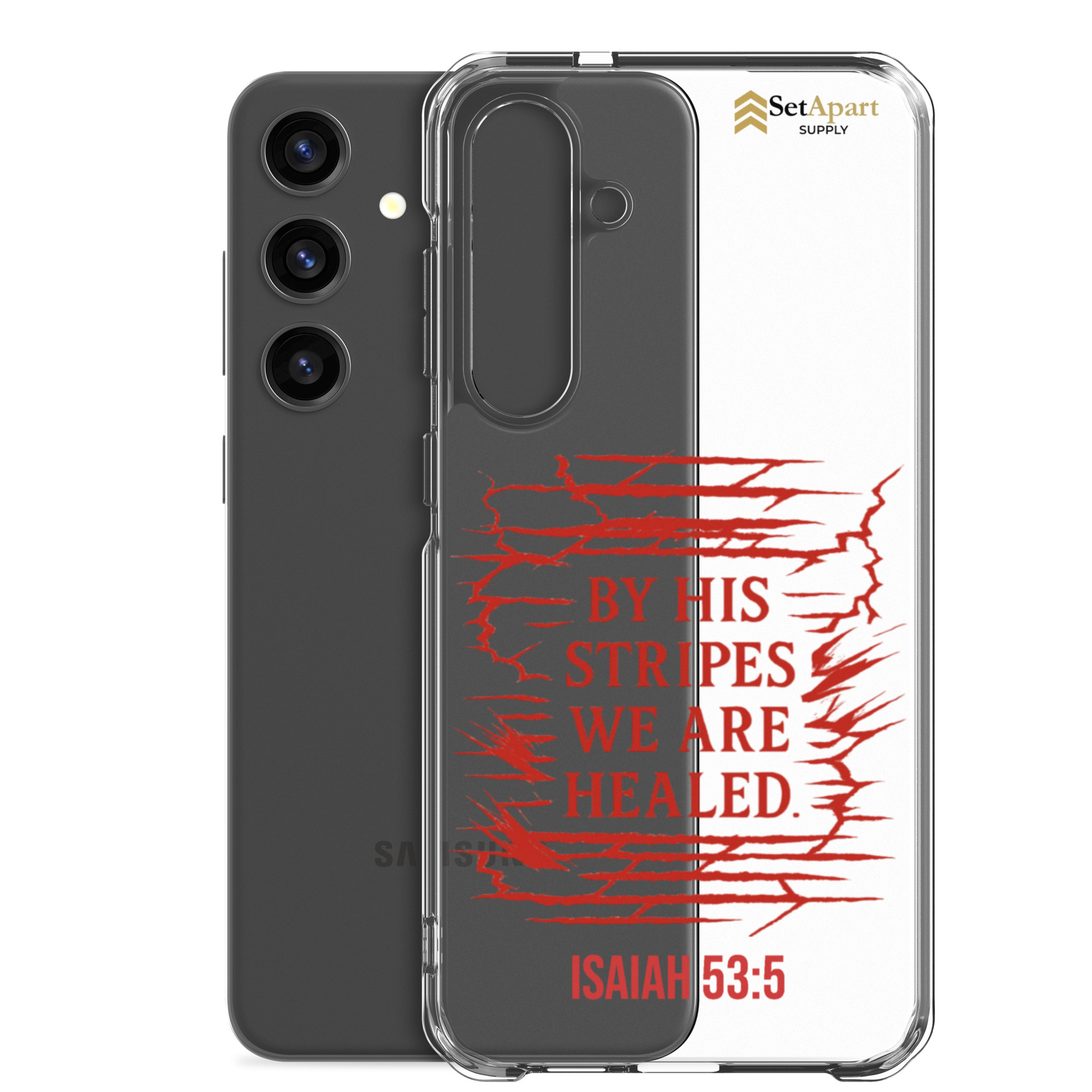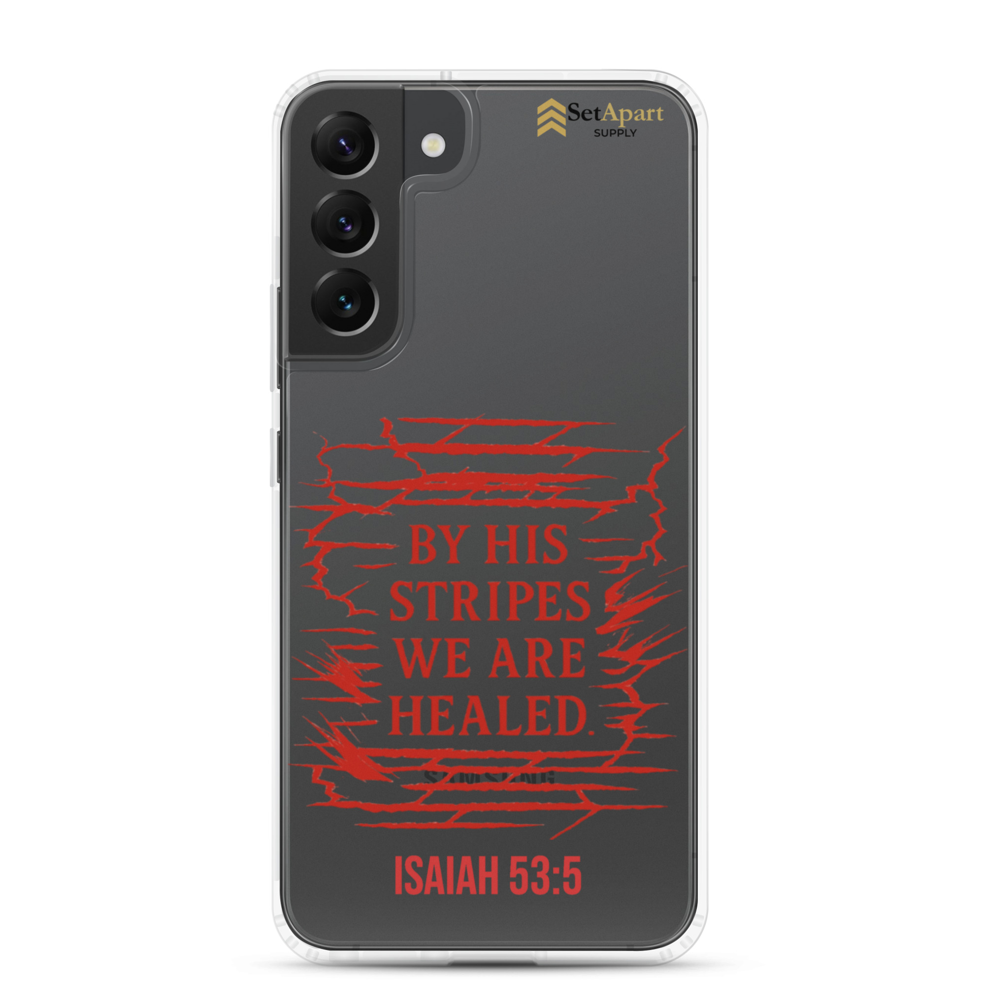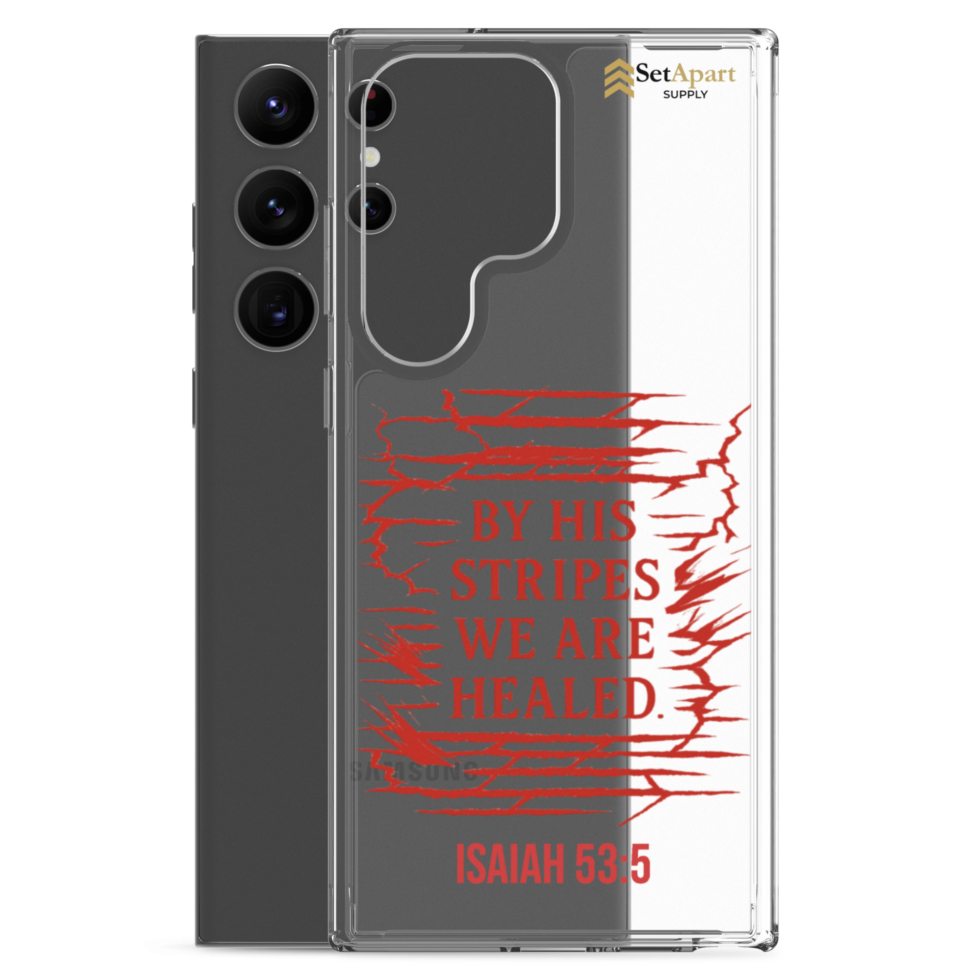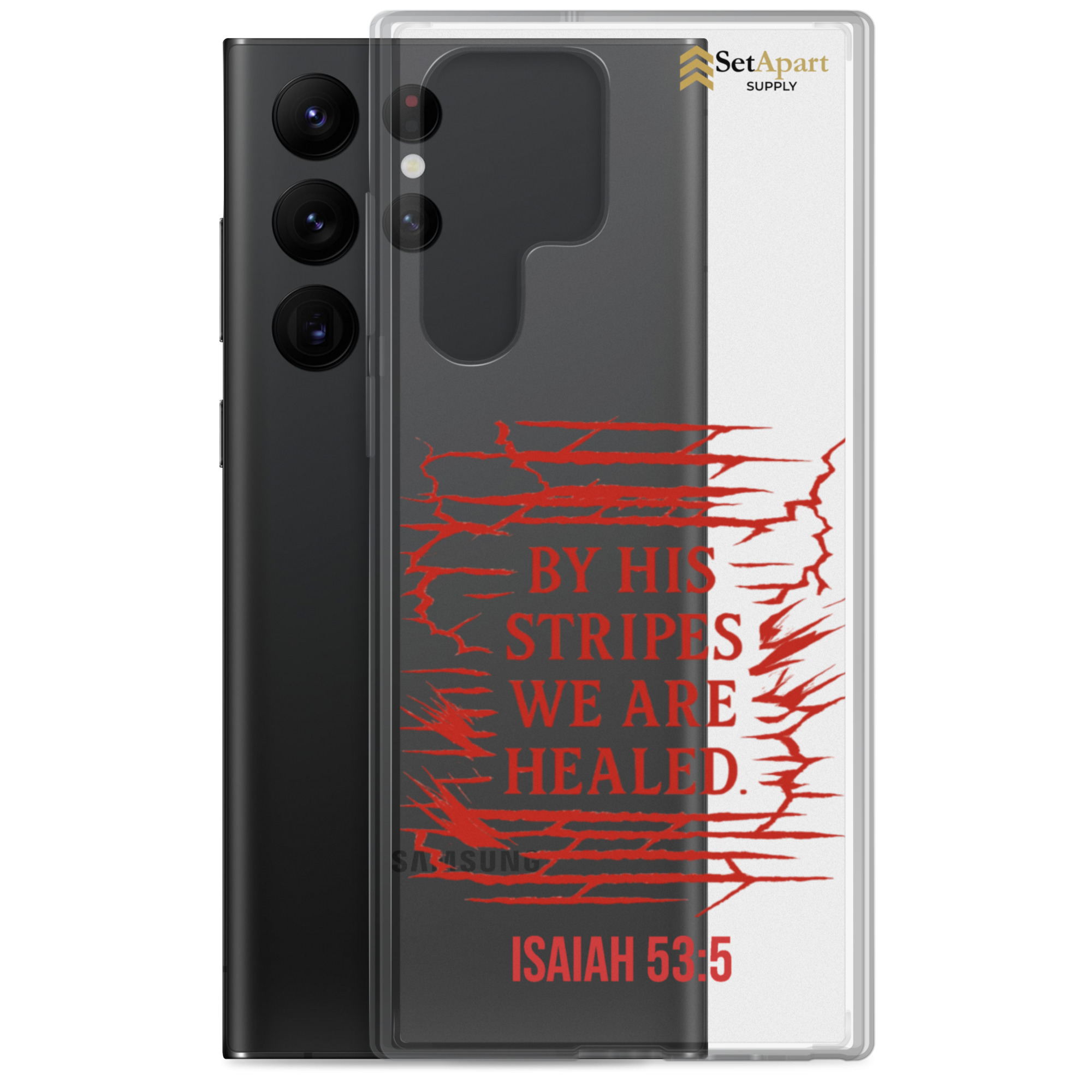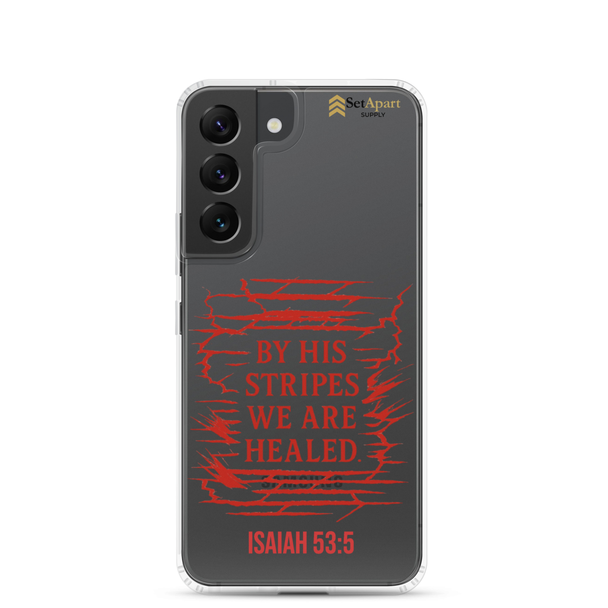 The By His Stripes We Are Healed Clear Samsung Case by Marked & Chosen places scripture at the center of everyday life.
