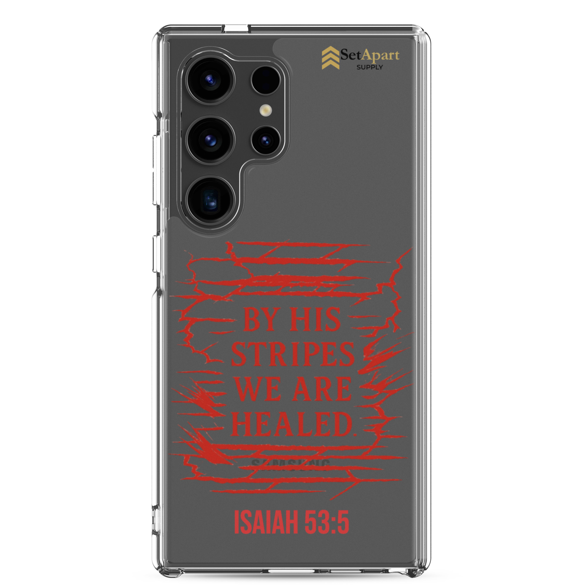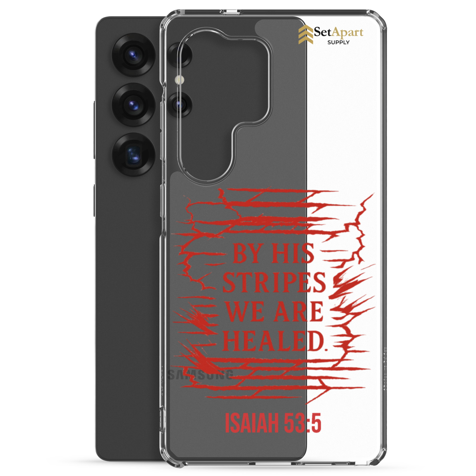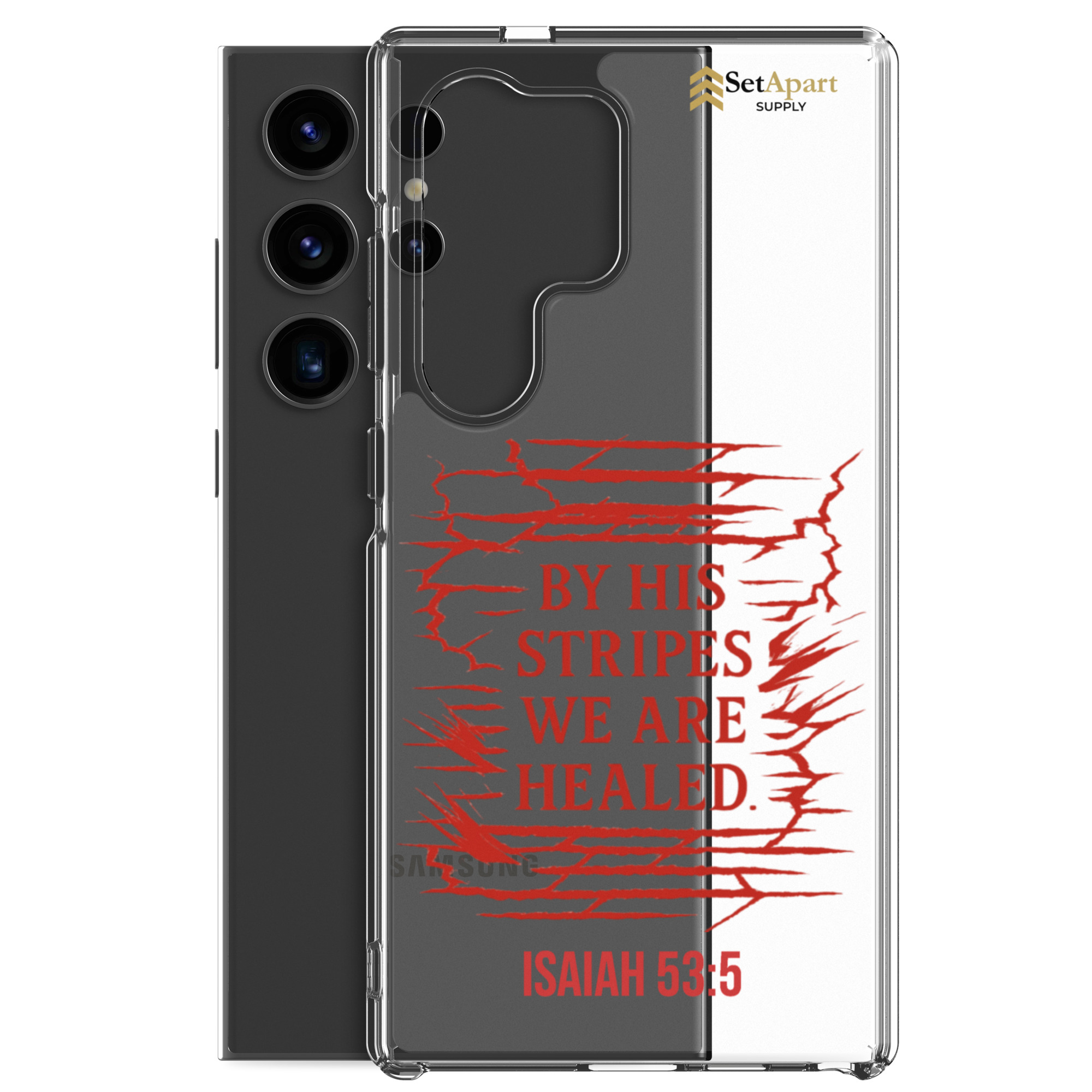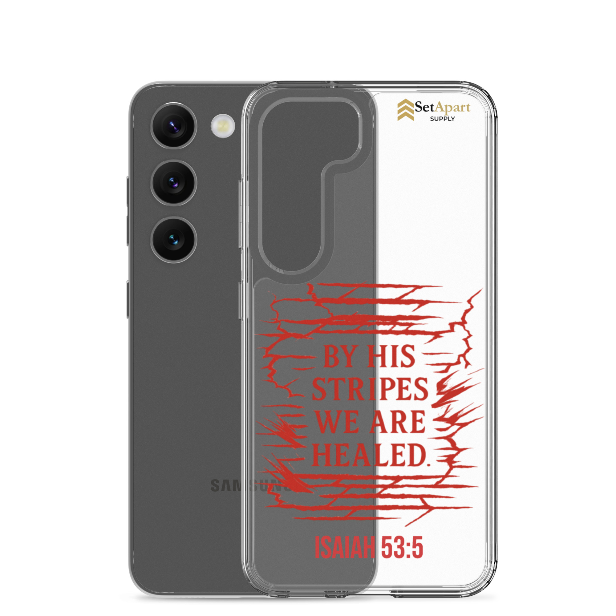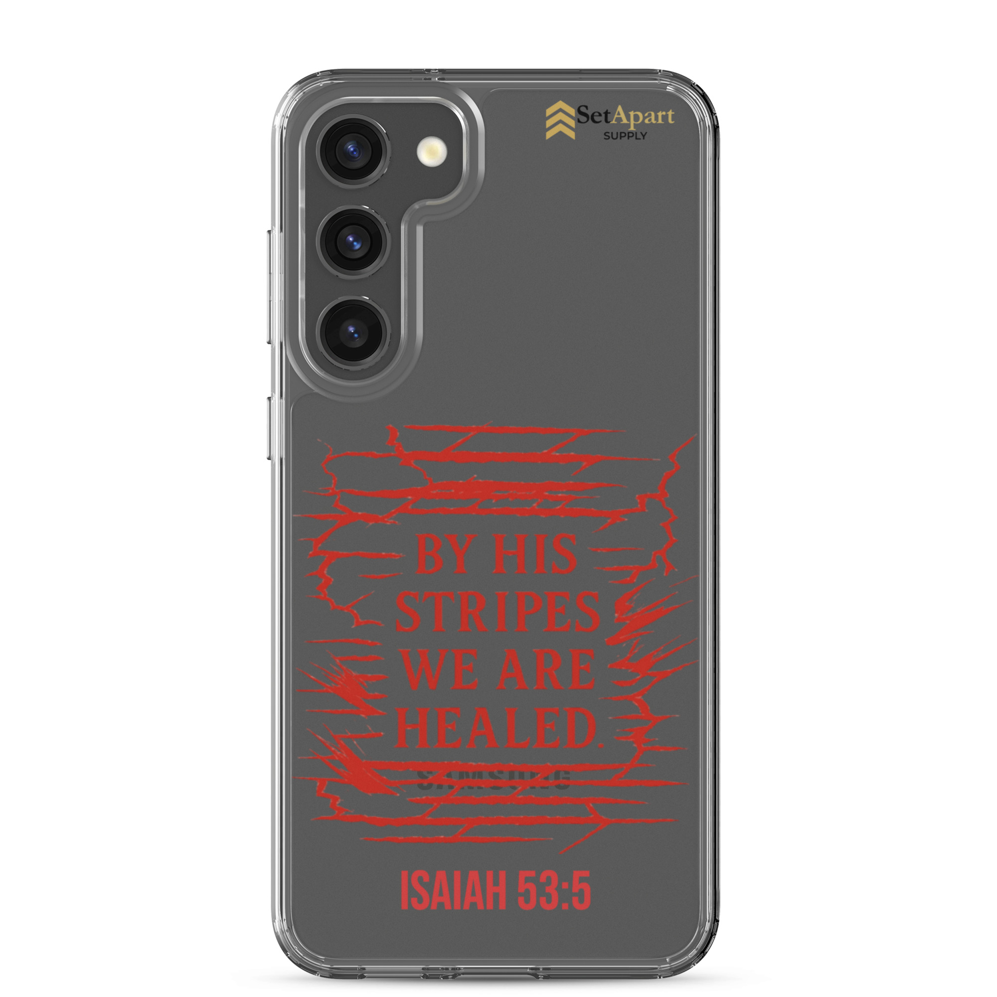 The By His Stripes We Are Healed Clear Samsung Case by Marked & Chosen places scripture at the center of everyday life.