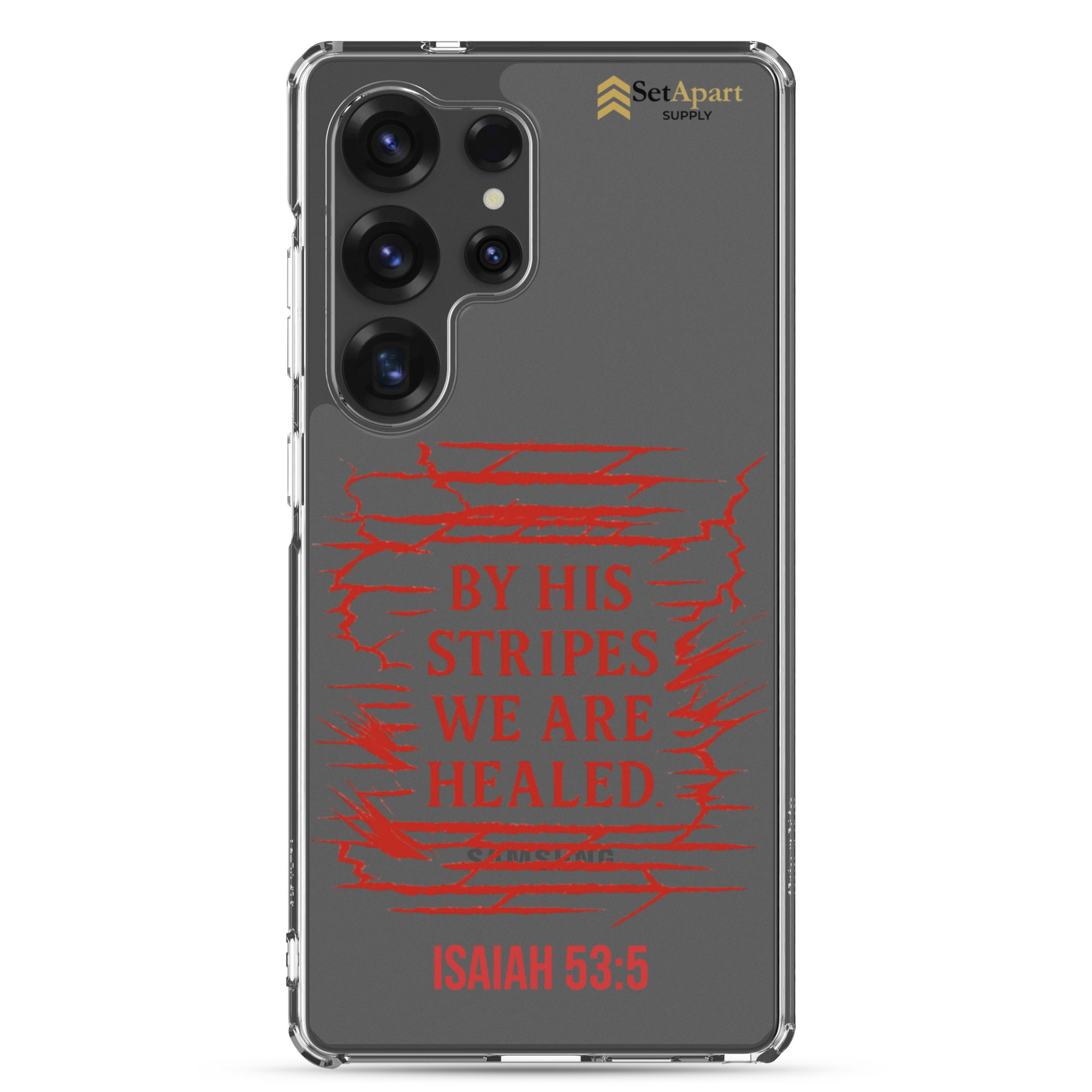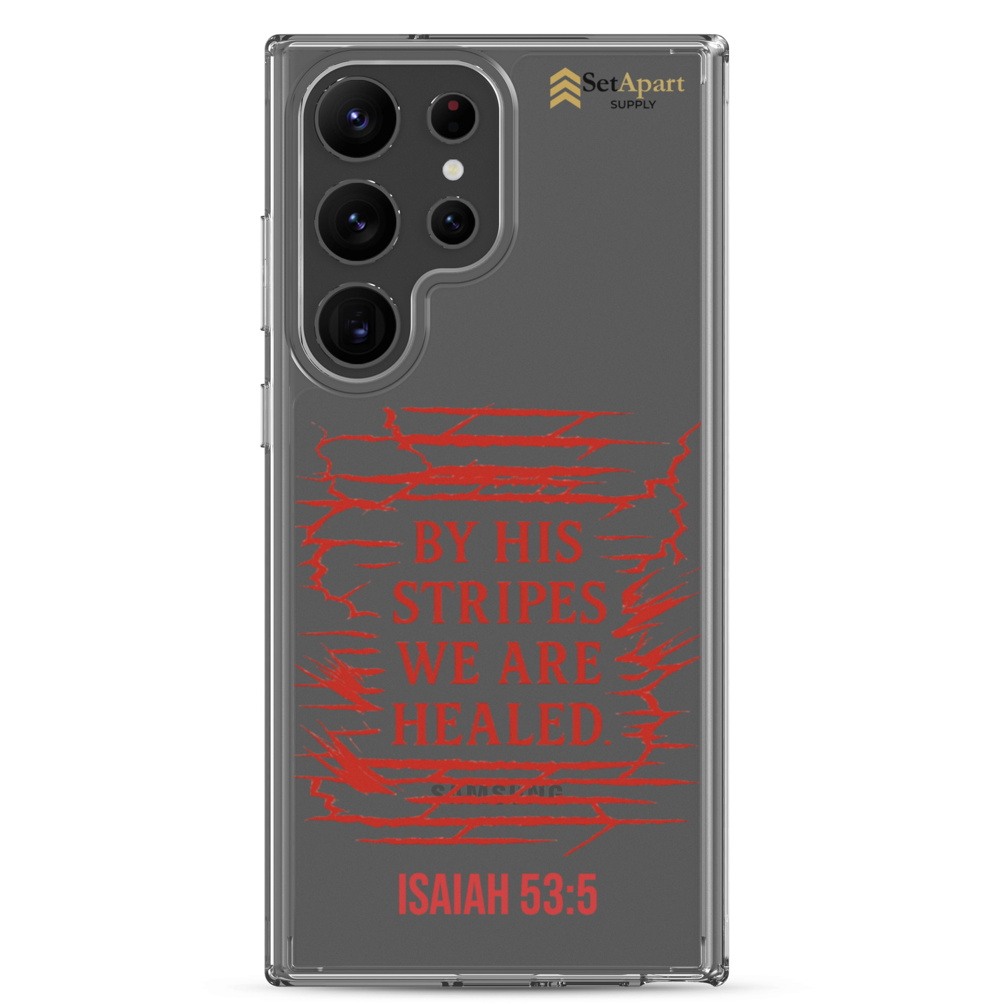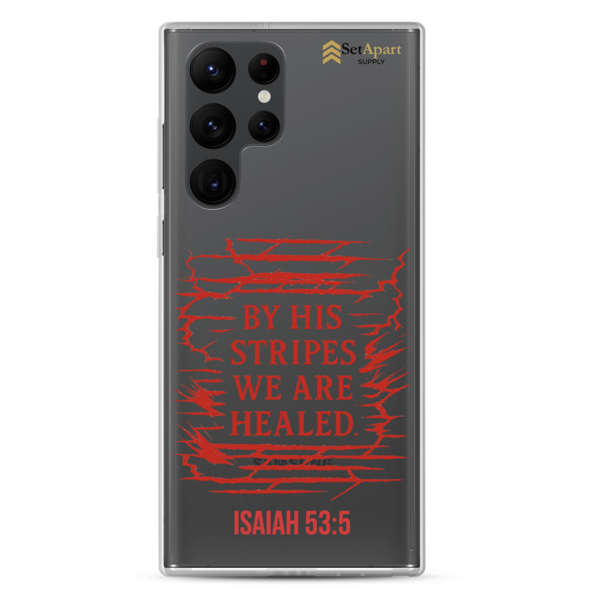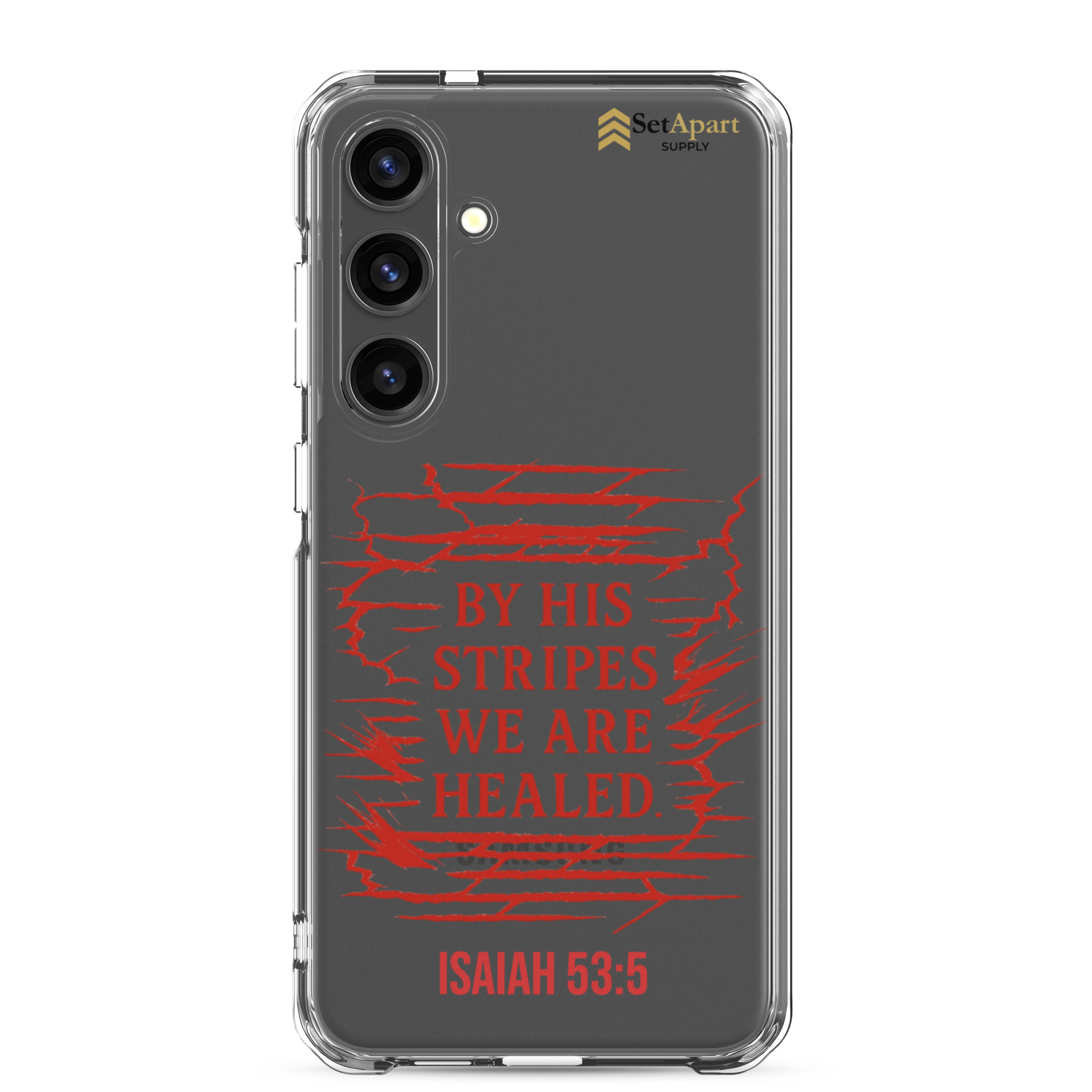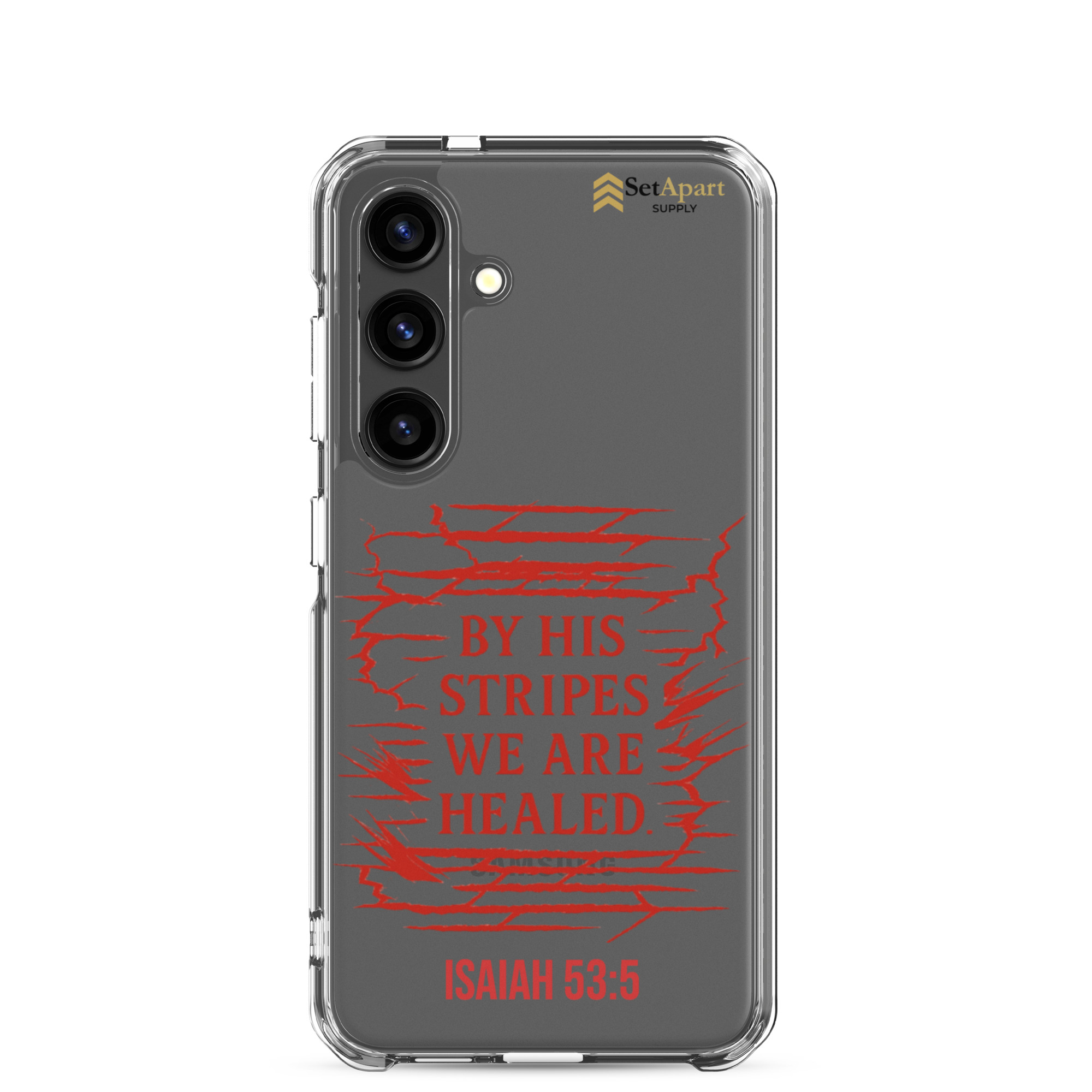 The By His Stripes We Are Healed Clear Samsung Case by Marked & Chosen places scripture at the center of everyday life.