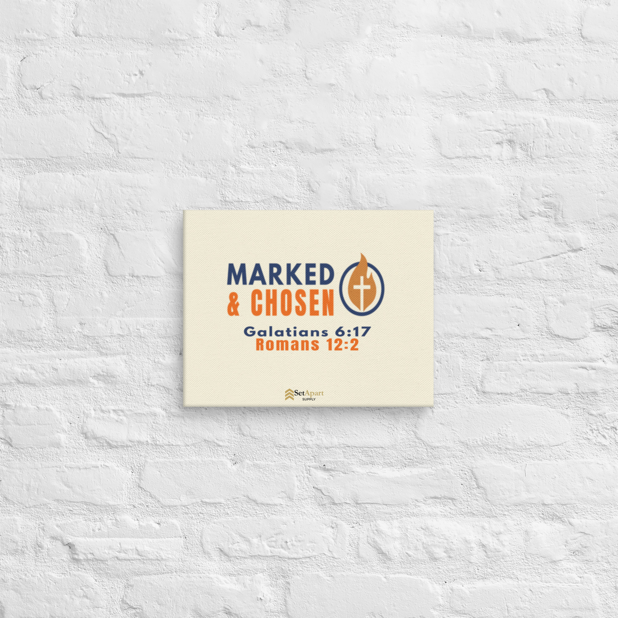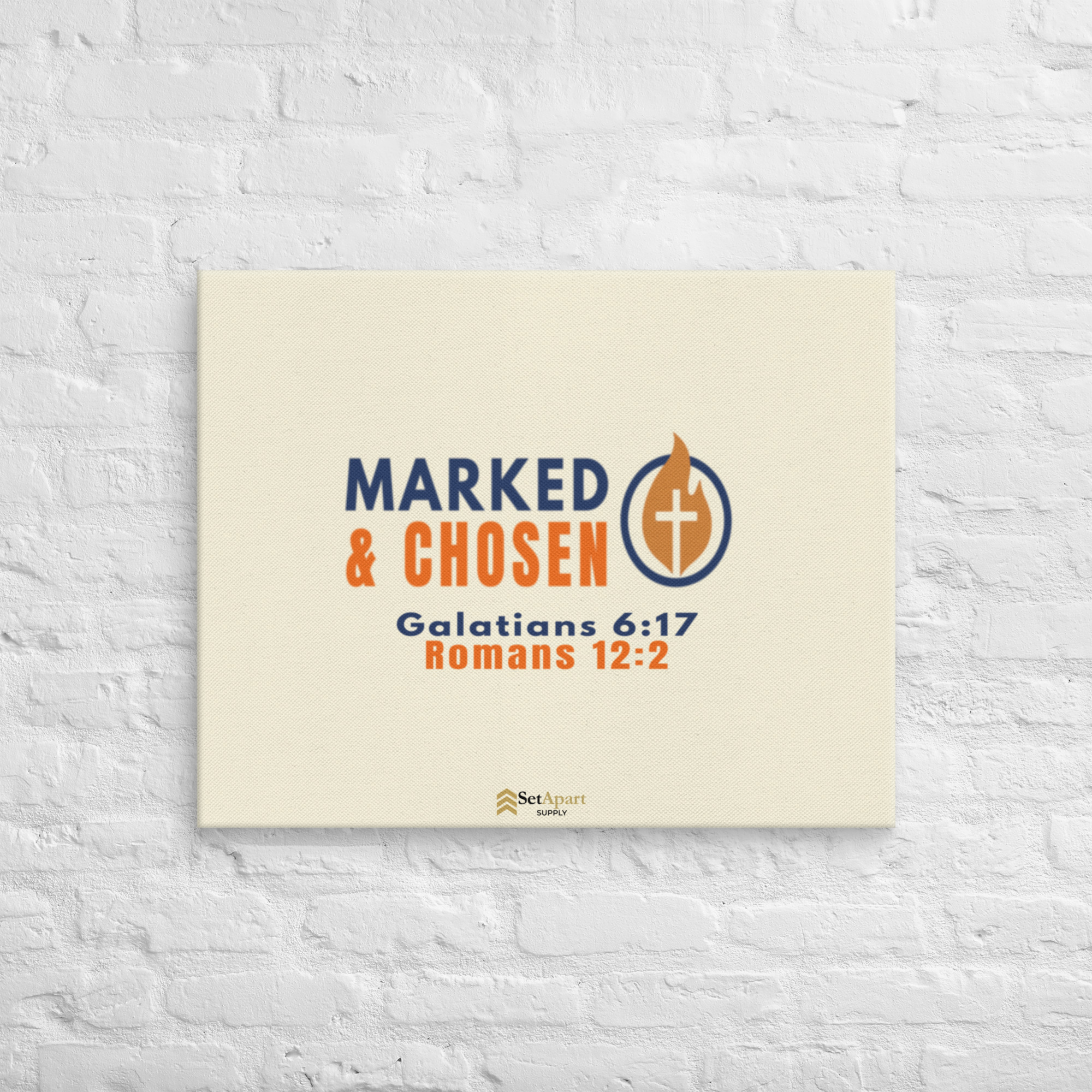 Featuring the Marked & Chosen logo and scripture-forward design, this canvas delivers clarity and permanence. The composition is intentional, balanced, and restrained, allowing the message to stand without excess. Whether displayed in a home, office, studio, or prayer space, it serves as a visible reminder of belonging and purpose.