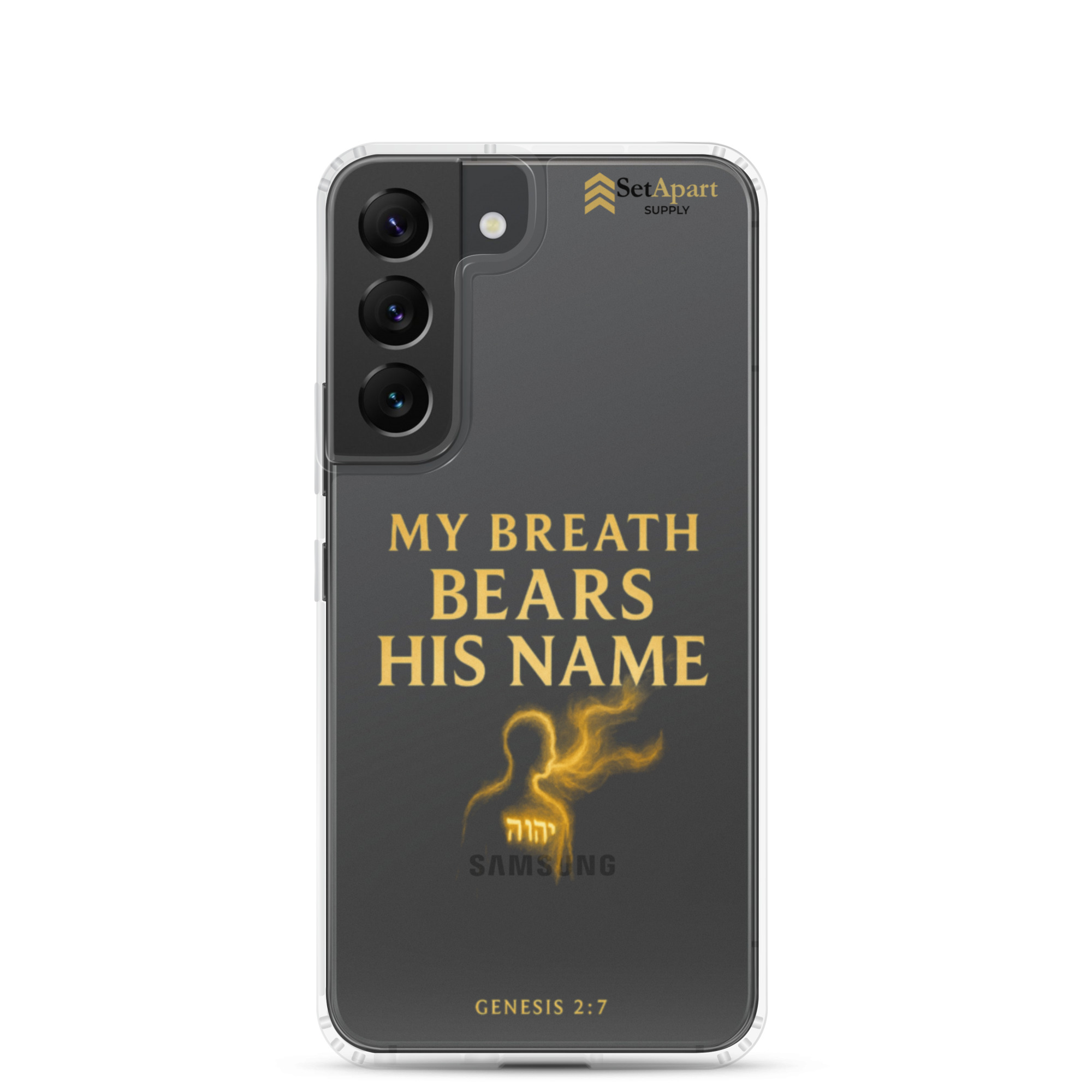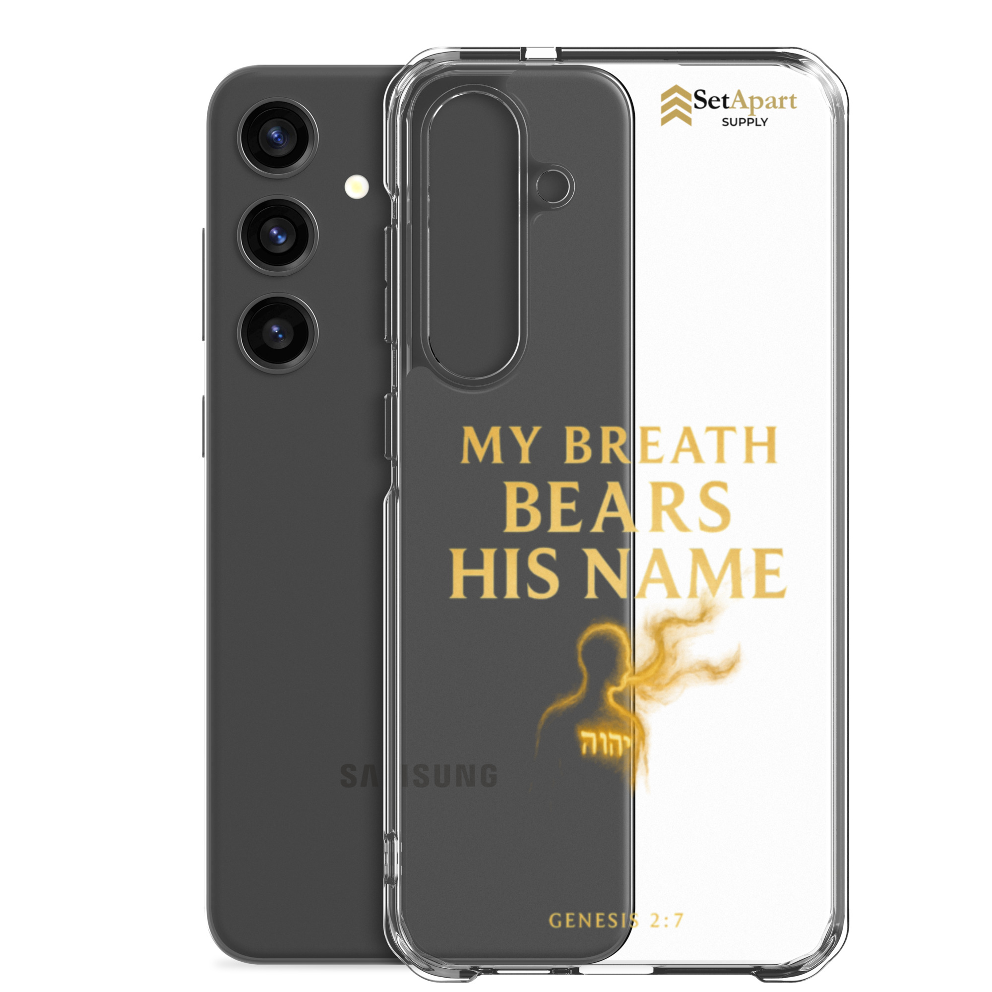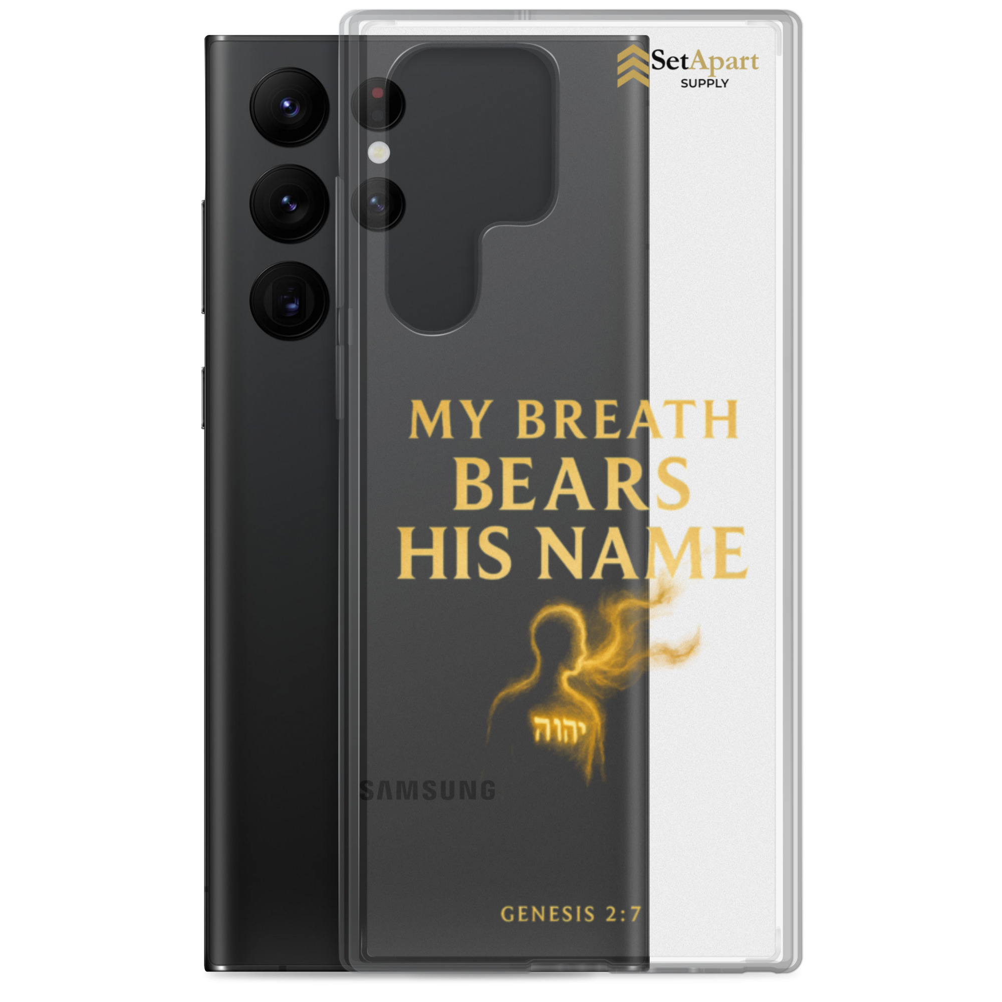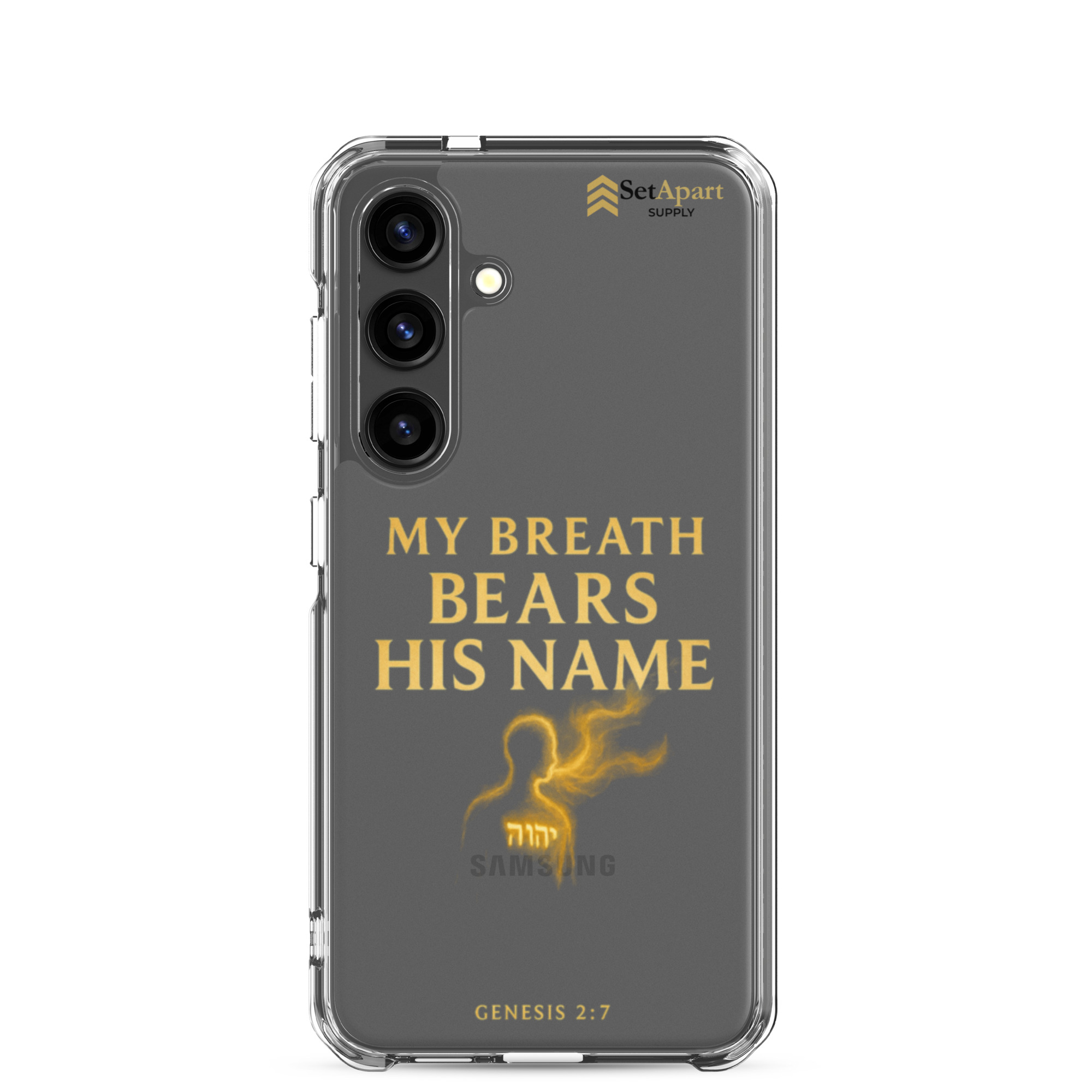 The My Breath Bears His Name Clear Samsung Galaxy Case is built for daily carry — a clean, protective accessory that keeps identity visible without excess.