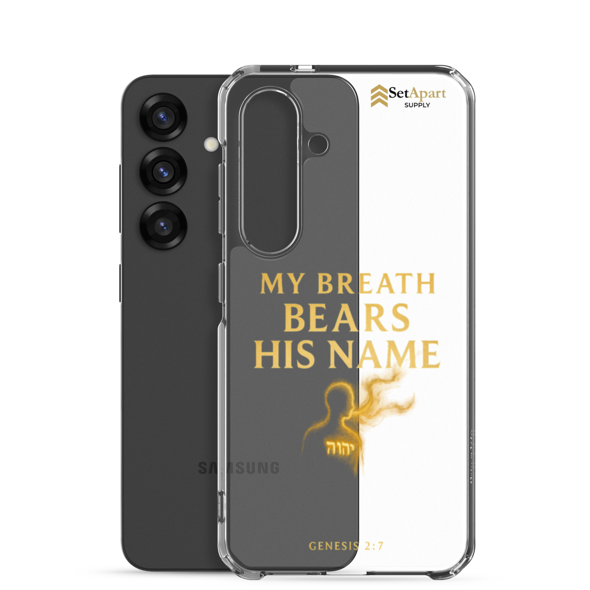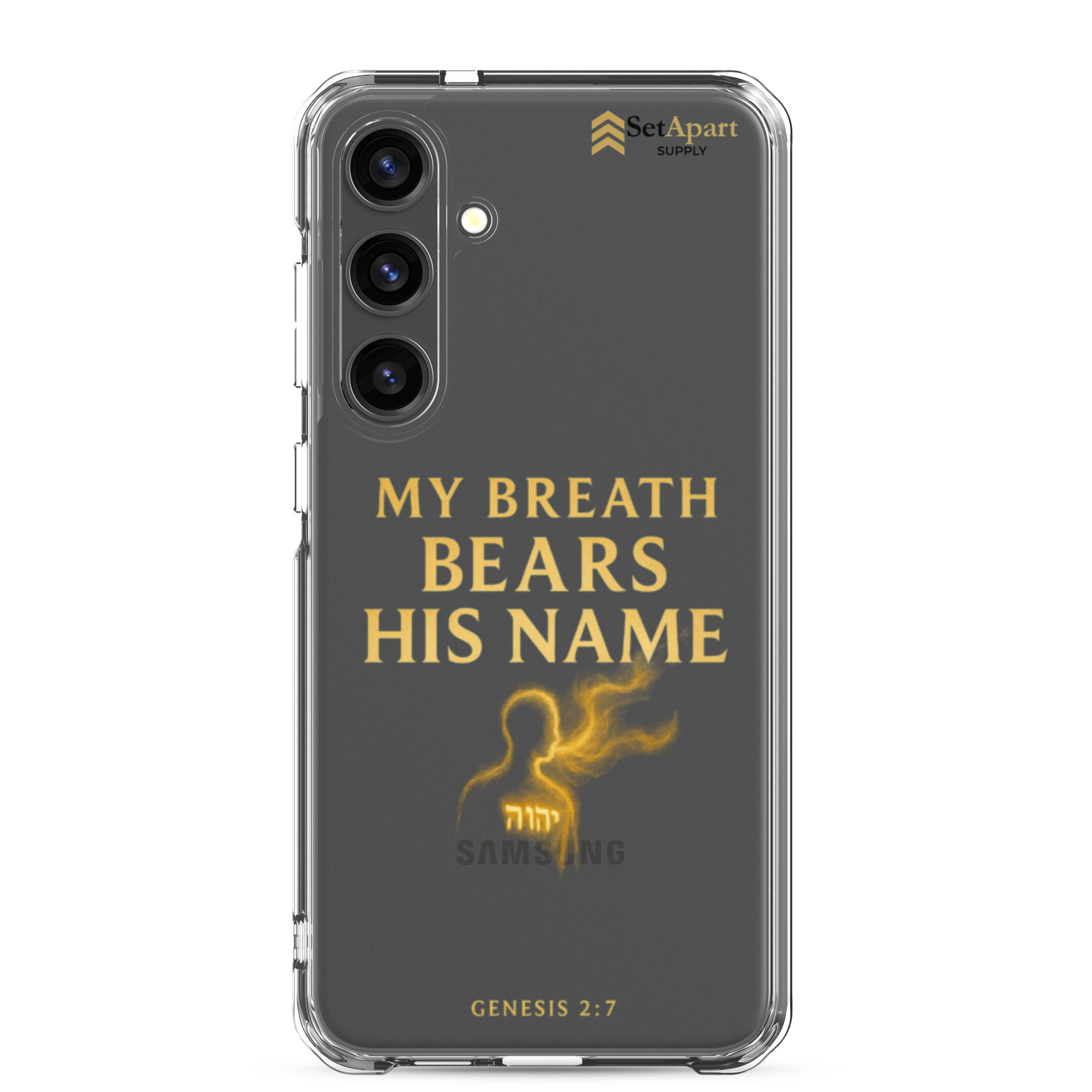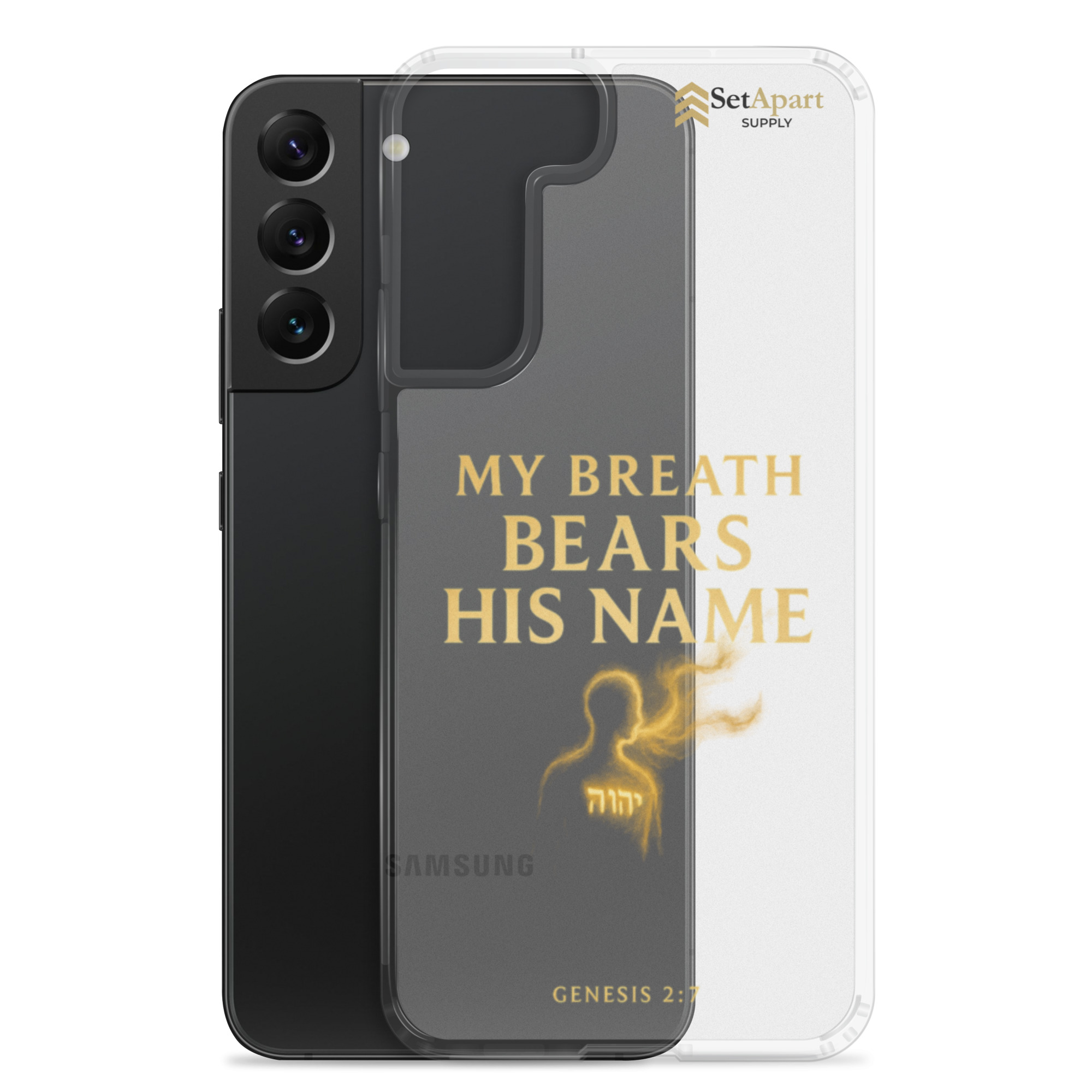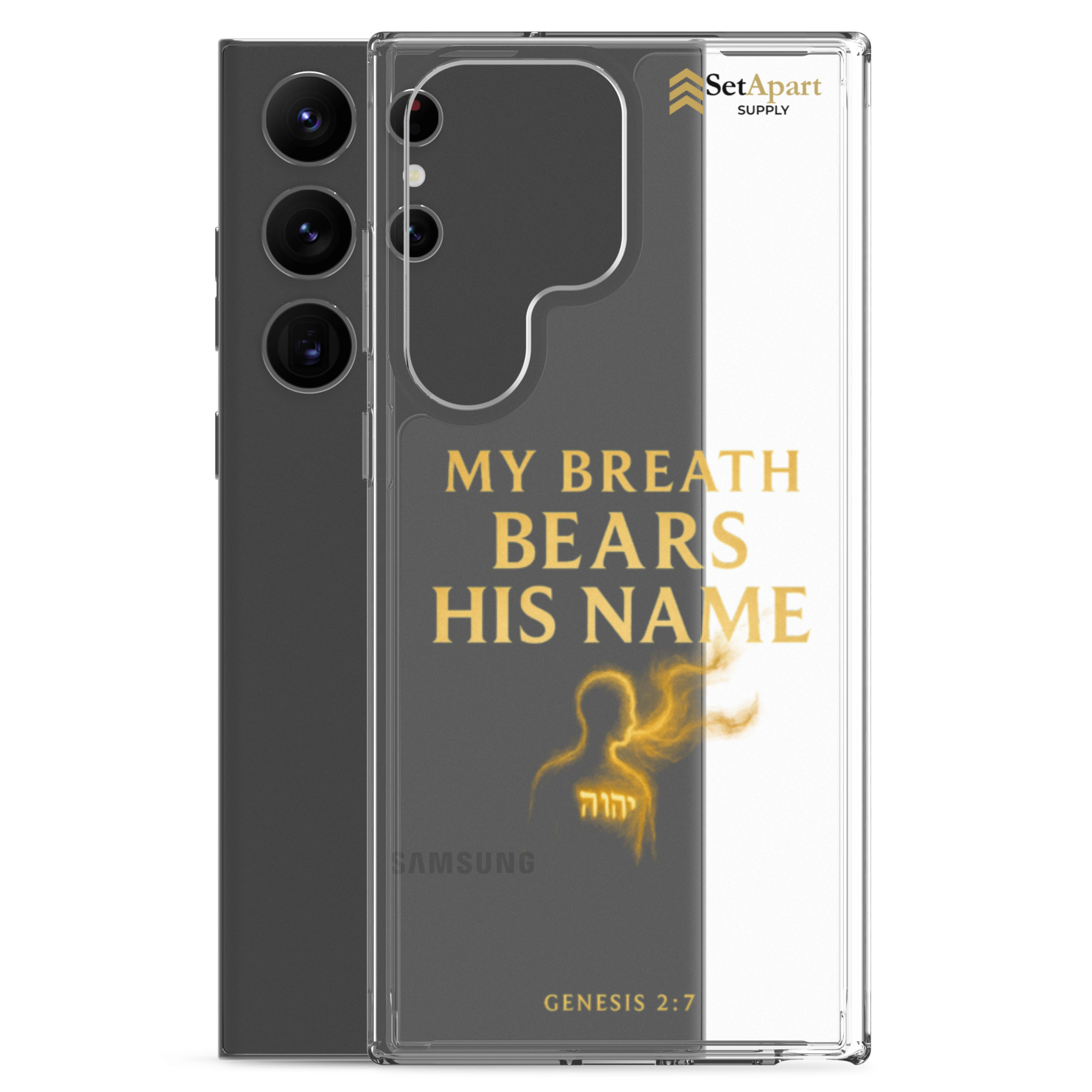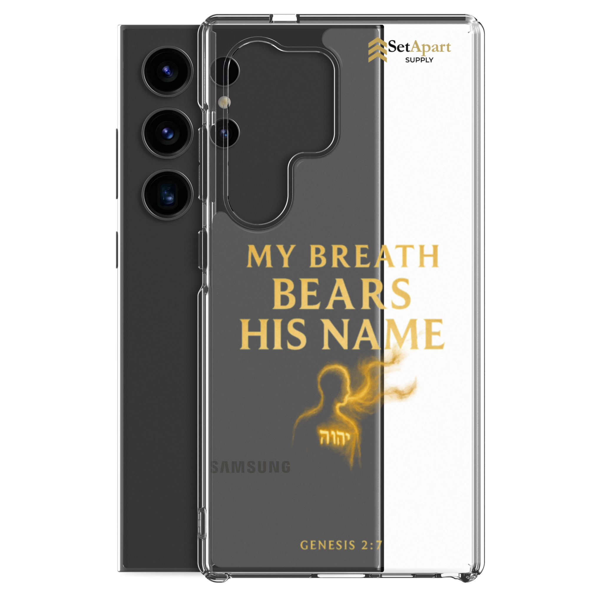 The My Breath Bears His Name Clear Samsung Galaxy Case is built for daily carry — a clean, protective accessory that keeps identity visible without excess.