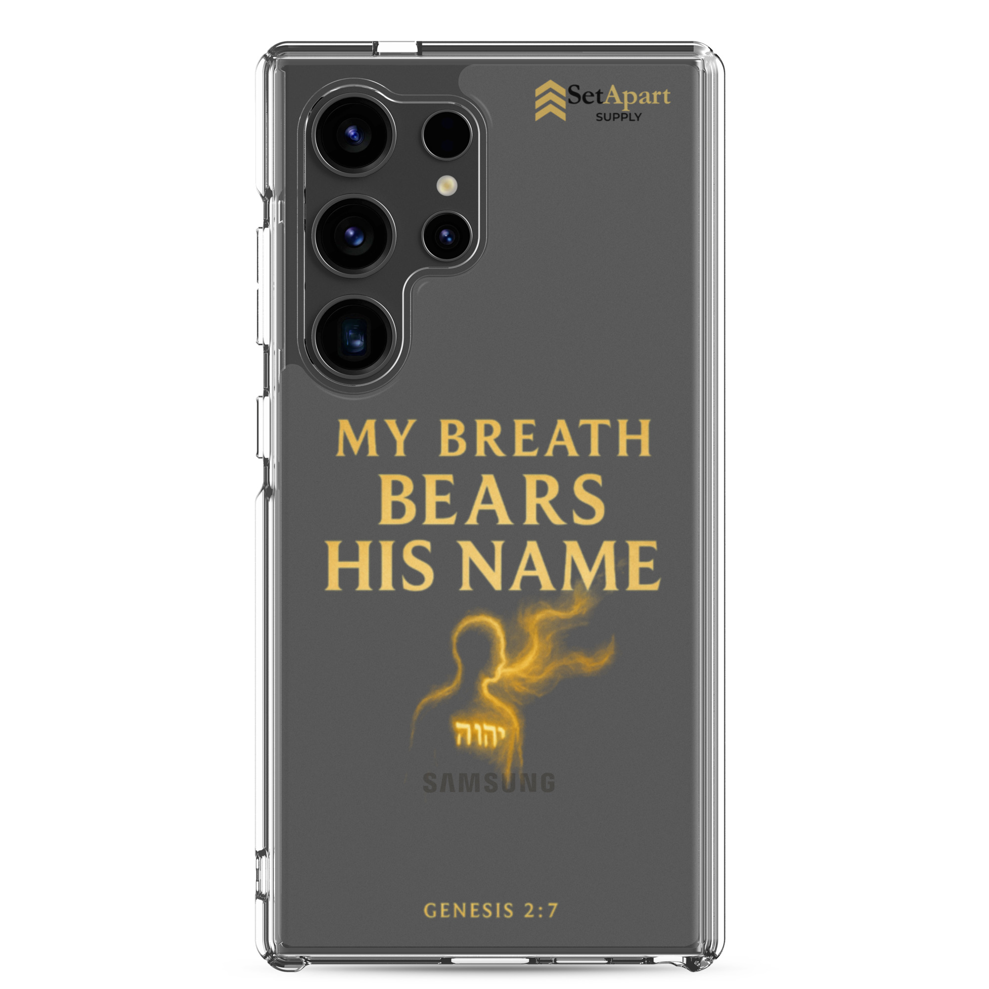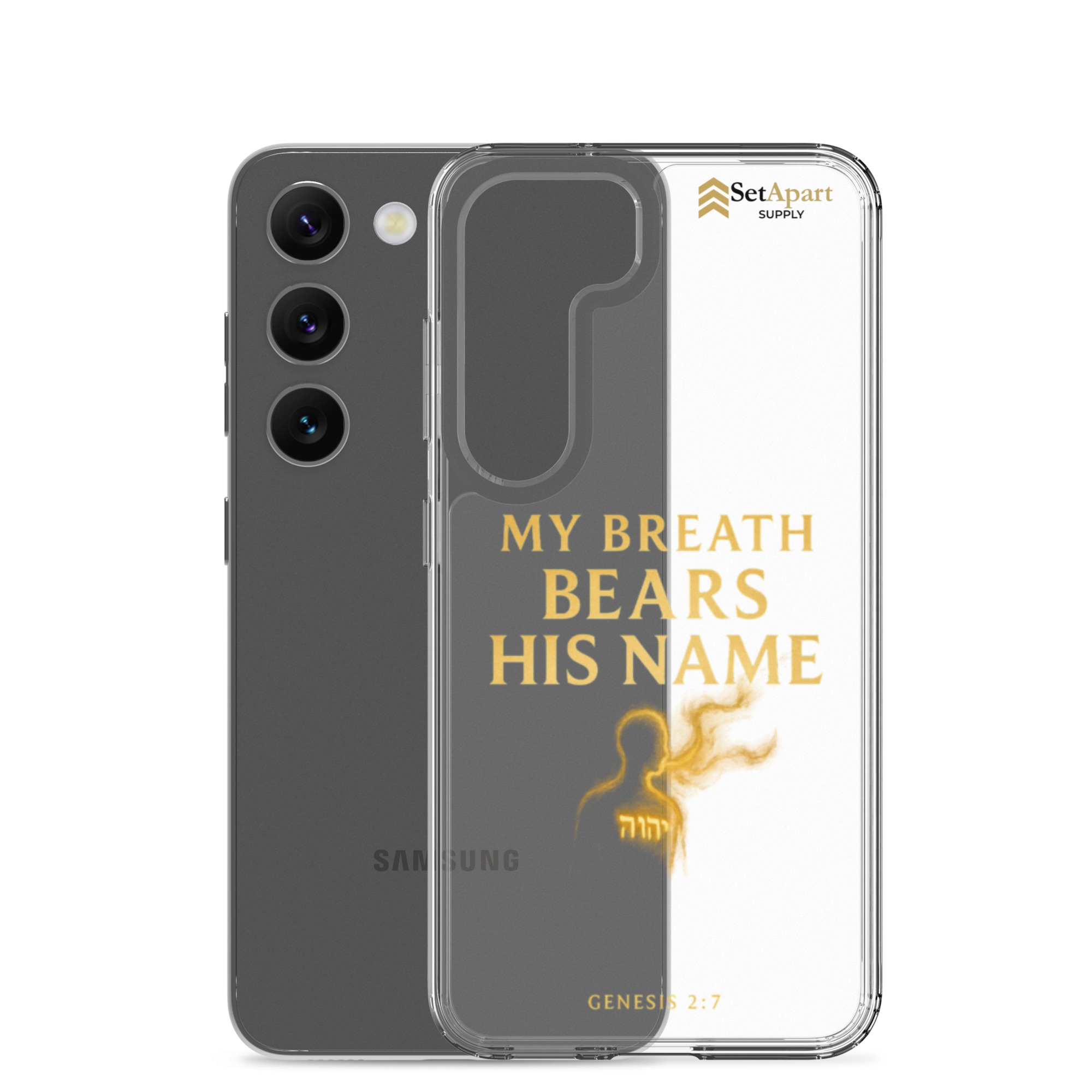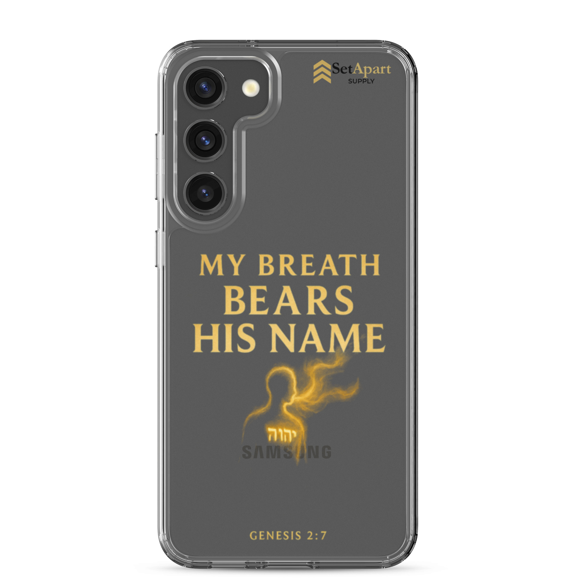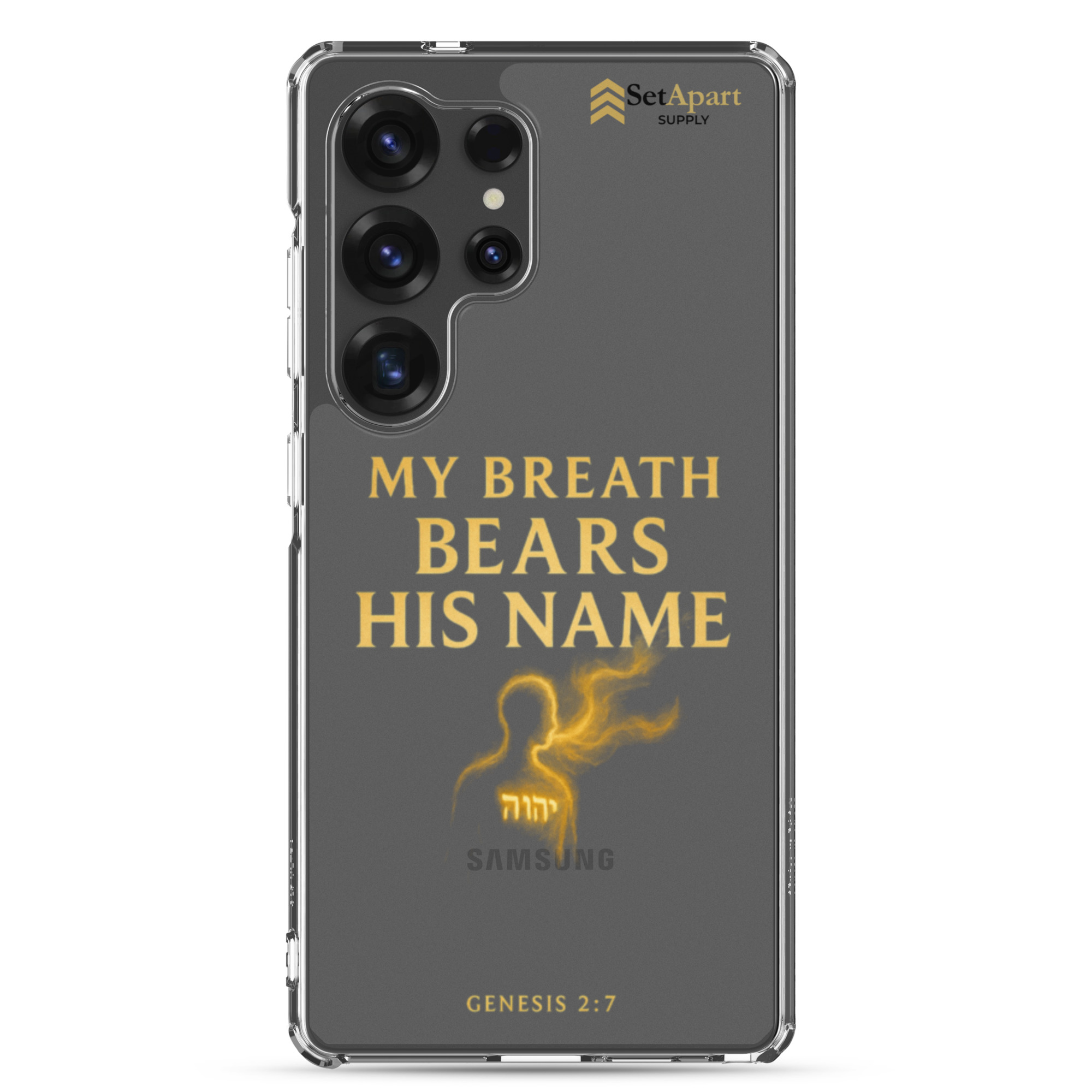 The My Breath Bears His Name Clear Samsung Galaxy Case is built for daily carry — a clean, protective accessory that keeps identity visible without excess.