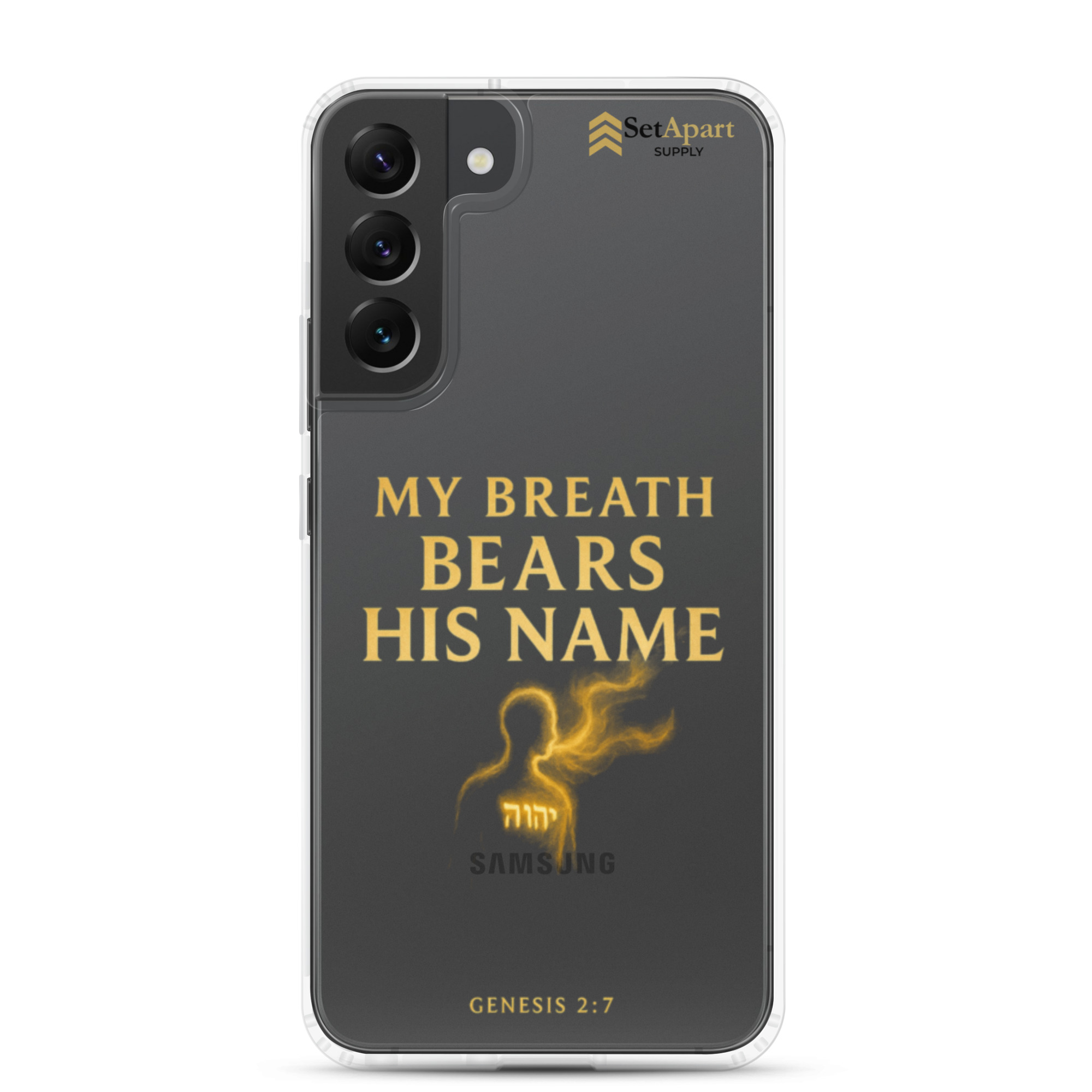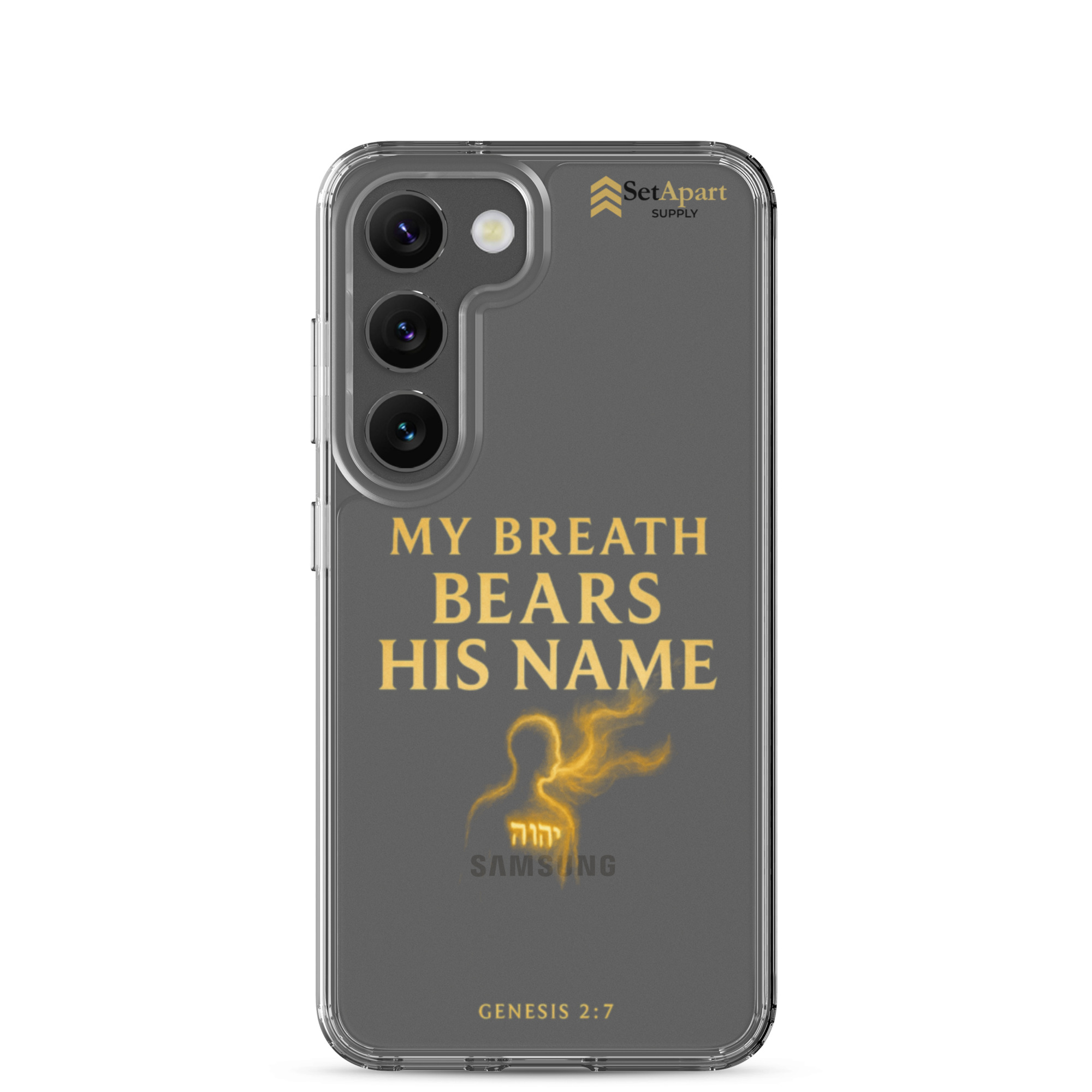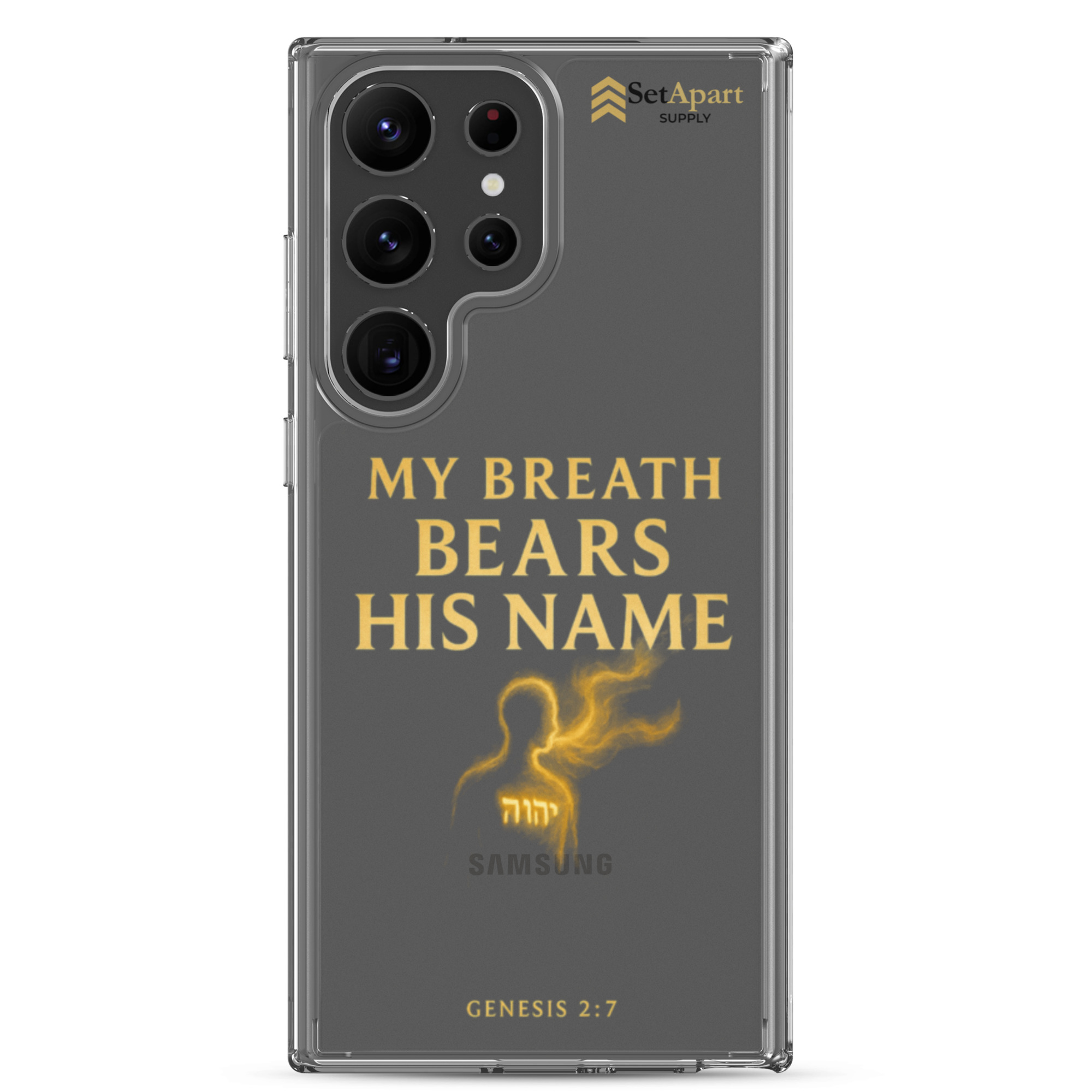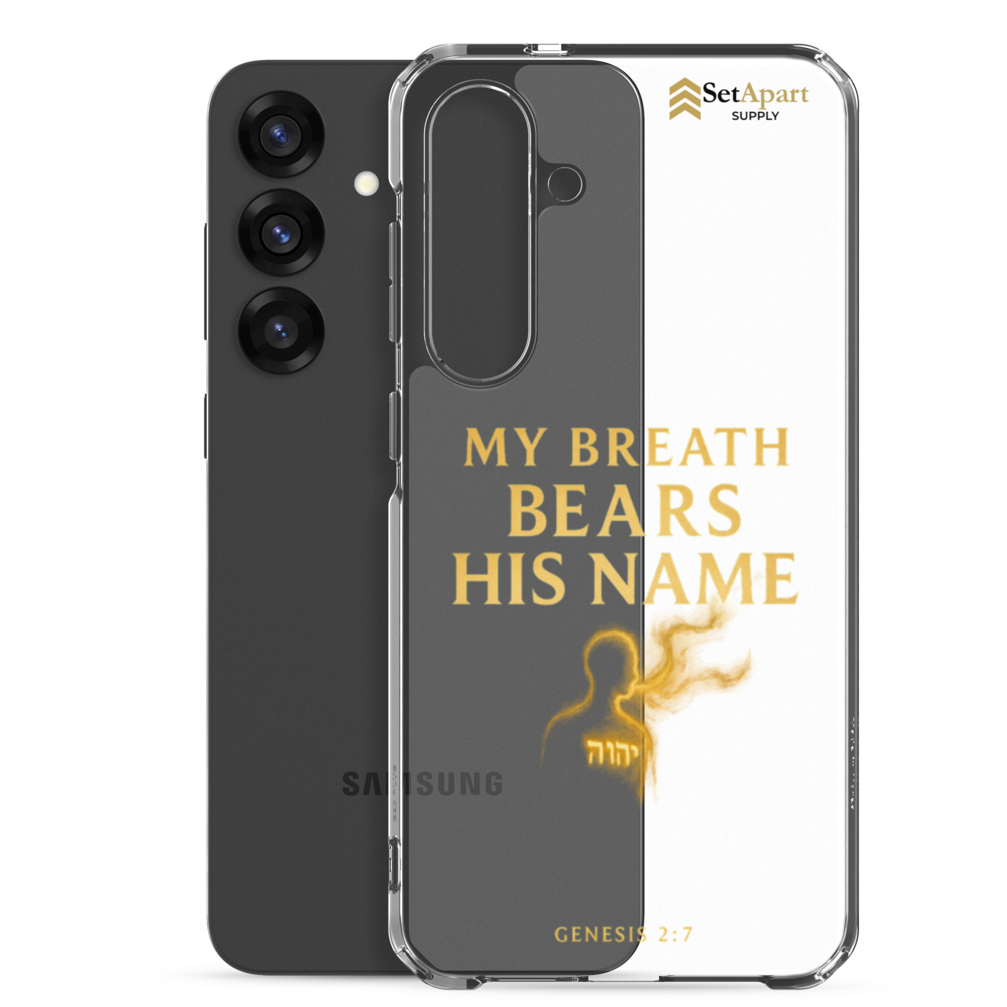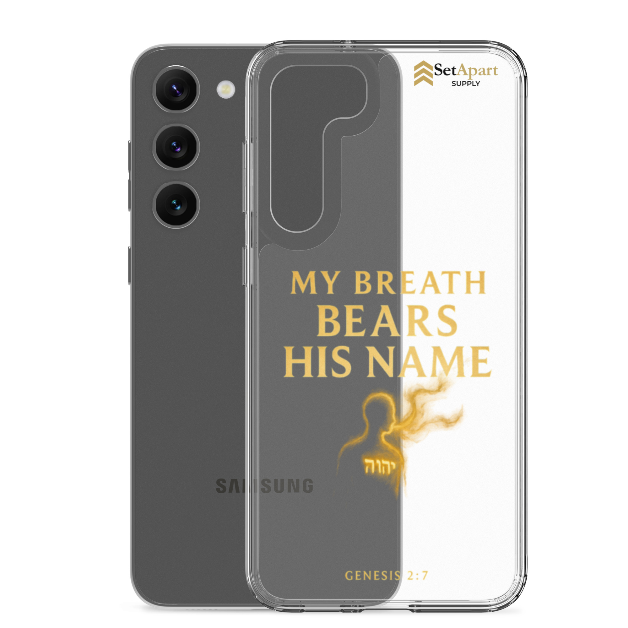 The My Breath Bears His Name Clear Samsung Galaxy Case is built for daily carry — a clean, protective accessory that keeps identity visible without excess.