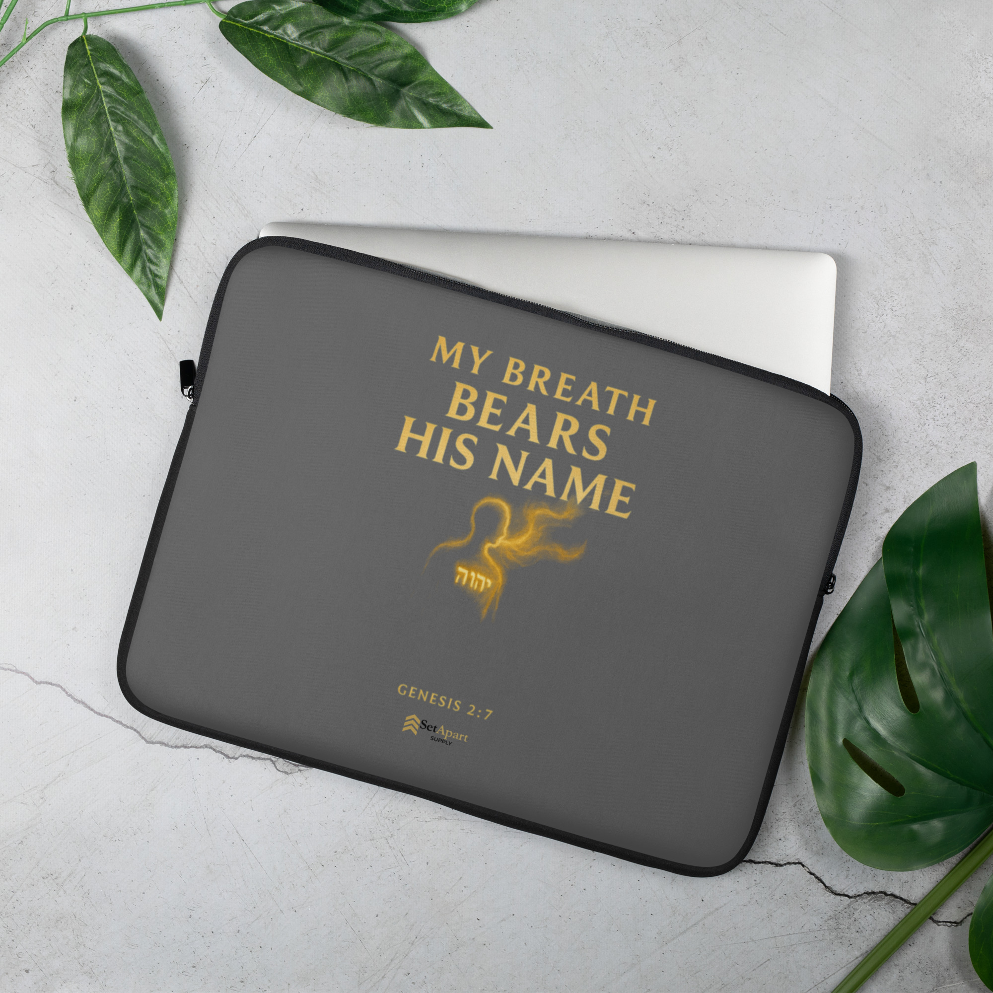 The My Breath Bears His Name Laptop Sleeve is built for protection and purpose — a daily carry piece designed to guard what you work on while reflecting who you are.