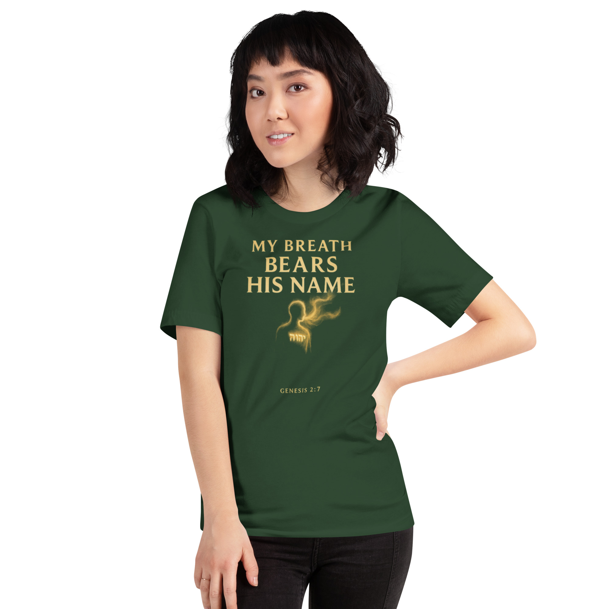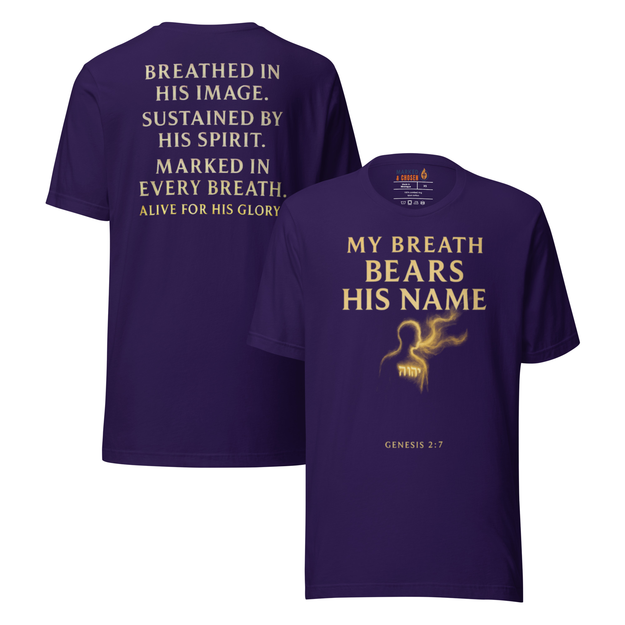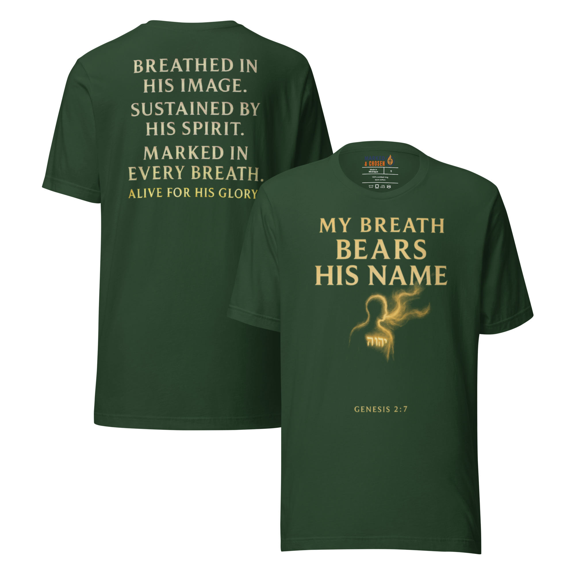 The My Breath Bears His Name T-Shirt is built for identity — a declaration that life itself is marked by God, from the first breath to the last.