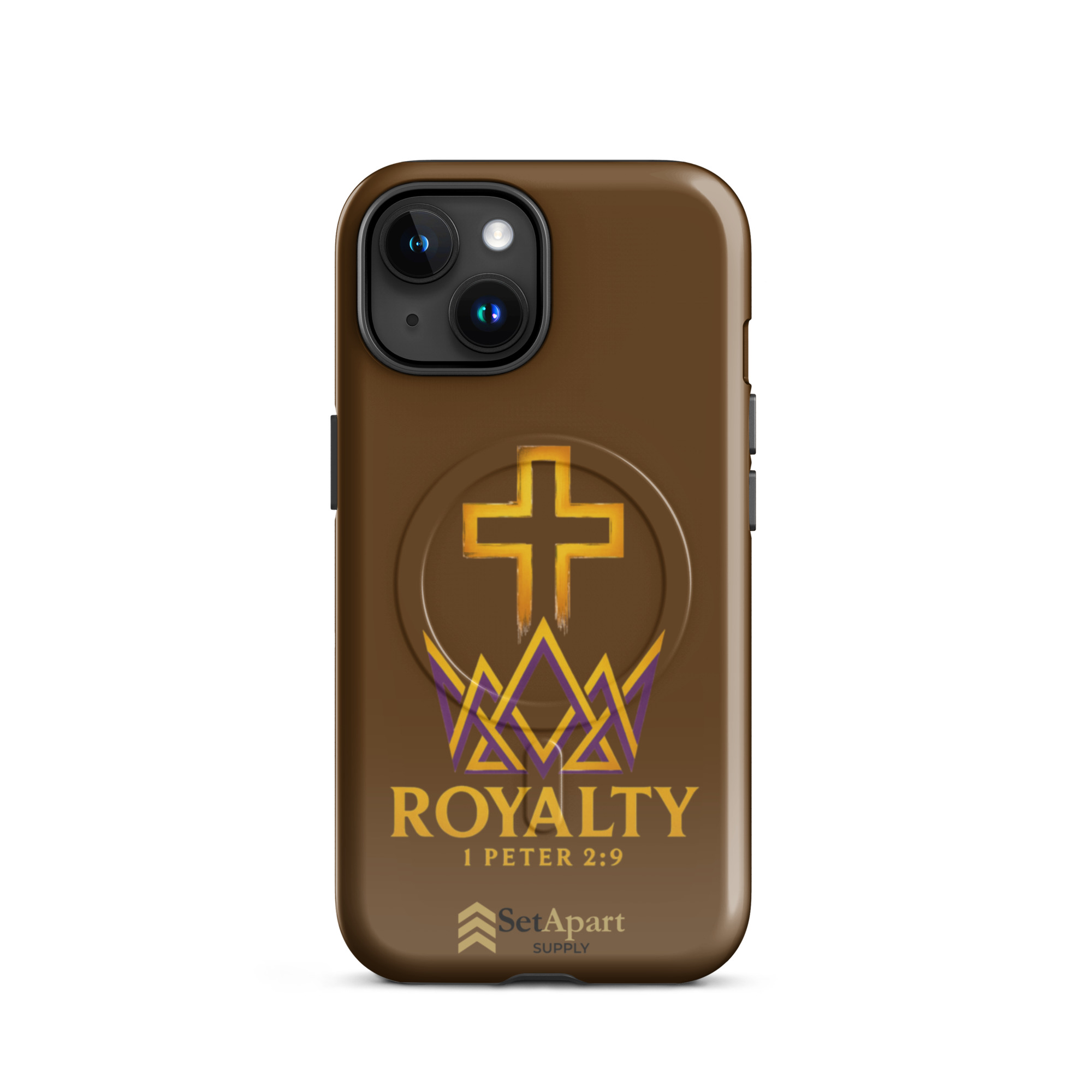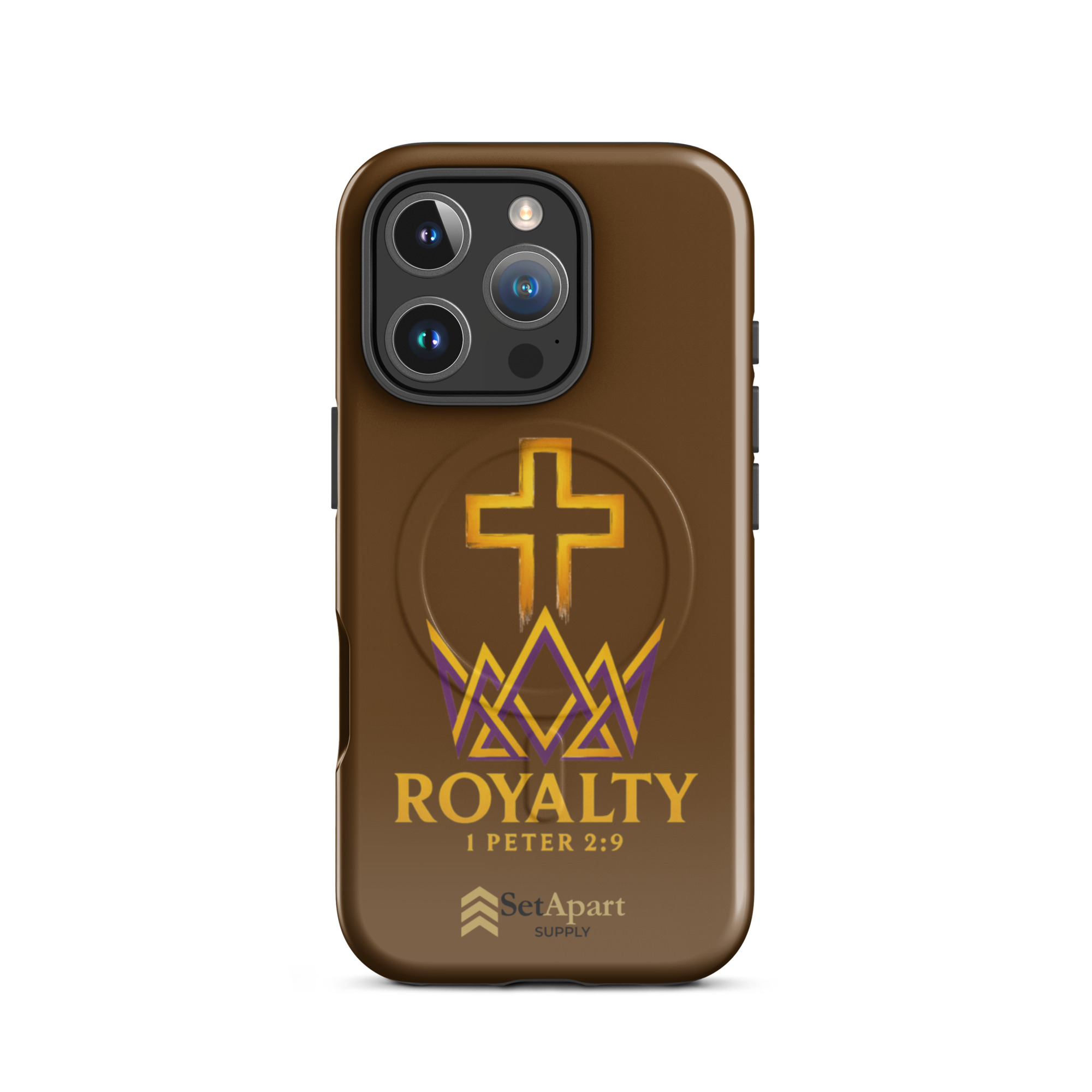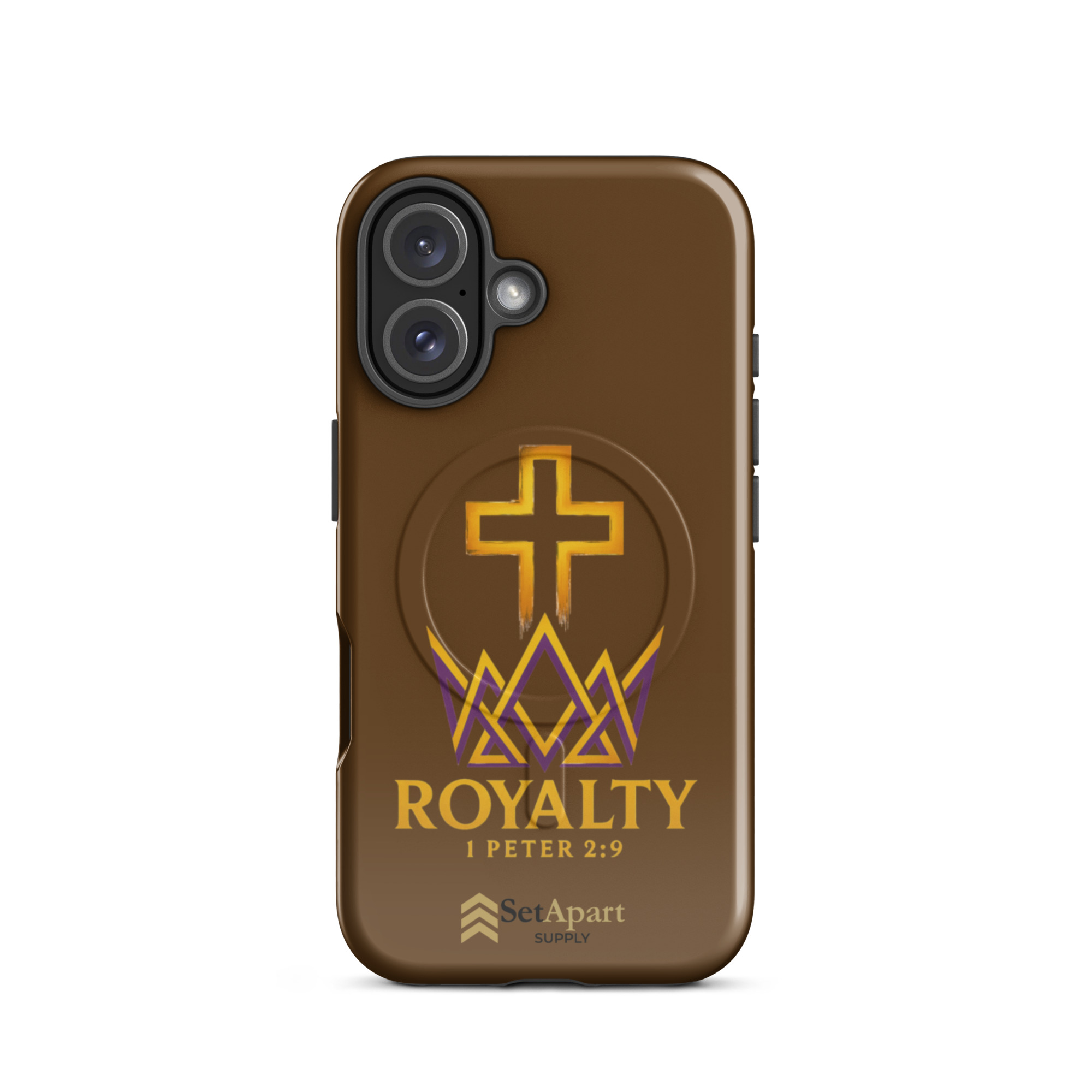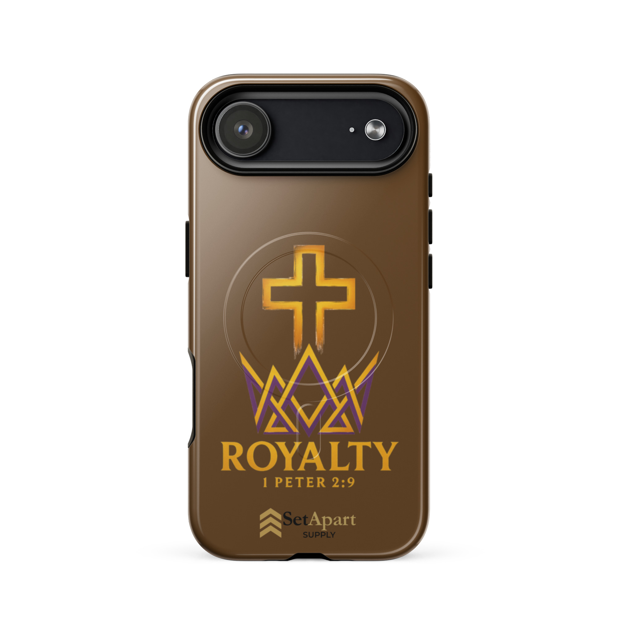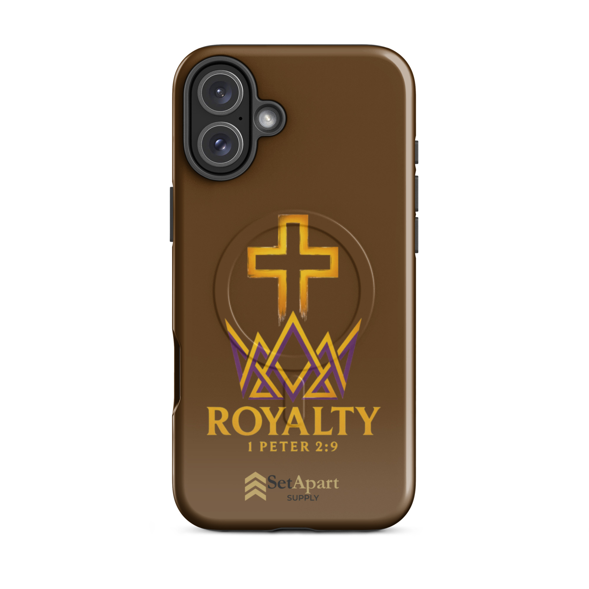 Anchored in 1 Peter 2:9, the case features the Royalty front graphic: a radiant golden cross positioned above a geometric crown. The hierarchy is intentional—the cross above the crown, alignment before authority. The design remains clear and centered, allowing conviction to speak without clutter.